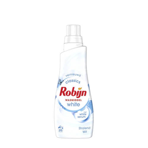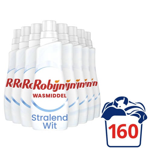 Speciaal ontwikkeld voor de witte was Robijn Klein & Krachtig Stralend Wit wasmiddel is speciaal ontwikkeld voor de reiniging en verzorging van de witte was. Er is bijna niets zo lekker als pas gewassen kleding die je huis vult met een heerlijke frisse geur. Schoon kun je namelijk niet alleen zien, maar ook ruiken. Kenmerken:- Voor al je witte was- Beschermt de vezels- Je kleding blijft lang fris ruiken, zelfs in de kast- Verrijkt met CareSerum- Met witversterkter, zodat je was stralend wit blijft- De acht 700 ml verpakkingen zijn samen goed voor 160 wasbeurtenDe heerlijk frisse geur van Robijn Klein & Krachtig Stralend Wit wasmiddel blijft lekker lang hangen, ook als je de kleding na een tijdje uit de kast haalt. Slechts één dopje Robijn Klein & Krachtig vloeibaar wasmiddel is genoeg voor een extra lange frisse geur. Dit product kun je zelf eenvoudig doseren zodat je altijd de juiste hoeveelheid gebruikt. Dit vloeibare wasmiddel is bovendien extra geconcentreerd; zo heb je minder nodig voor hetzelfde resultaat. De unieke formule beschermt de vezels van je kleding, zodat deze langer mooi blijft. Want: wat mooi is moet mooi blijven. Ook na veelvuldig wassen. Daar kun je op vertrouwen. Zo ben je altijd verzekerd van een stralend witte was. Lees altijd het wasetiket in de kleding voor het wassen met Robijn Klein & Krachtig Stralend Wit wasmiddel. Je kunt alle witte was wassen met dit vloeibare wasmiddel, behalve wol en zijde. Geniet van langer mooie, stralend witte kleding dankzij Robijn Klein & Krachtig Stralend Wit wasmiddel.Gebruiksaanwijzing:- Voor alle witte was op 15-30-40-60°C- Lees het wasetiket in de kleding- Licht- en donkergekleurd wasgoed niet samen wassen- Nieuwe gekleurde kleding eerst apart wassen of controleren op kleurafgifte- Giet de aanbevolen dosering in de waslade of in de doseerbal en doe deze in de trommel- Robijn Klein & Krachtig Stralend Wit wasmiddel kan gebruikt worden voor alle textielsoort, behalve wol en zijde, gebruik daarvoor Robijn Wol & Fijn