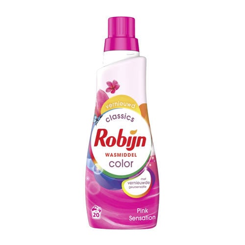 Verrijk je was met de heerlijke geur van Robijn Klein & Krachtig Pink Sensation Laat je verassen door de heerlijke en frisse geur van bloemen. Dankzij de unieke formule van Robijn wordt je kleding schoon gewassen én blijven je gekleurde kleren als nieuw. Robijn Pink Sensation zorgt er niet alleen voor dat je gekleurde kleren langer mooi blijven. De nieuwe langer fris formule is speciaal ontwikkeld om de frisse geur van je wasmiddel langer te behouden. Daardoor blijft je was langer fris ruiken, zelfs in de kast. Slechts één dopje is genoeg voor een extra lange frisse geur. Robijn Pink Sensation behoort daarnaast tot de Klein & Krachtig lijn van Robijn. Dit zijn extra geconcentreerde verpakkingen, die net zo lang meegaan als de grotere verpakkingen én dus beter zijn voor het milieu. Van mooie kleding wil je zo lang mogelijk genieten.Kenmerken:- Bevat een heerlijke zomerse bloemengeur- Verrijkt met CareSerum- Beschermt je kleding tegen slijtage- Langdurige frisheid- De acht 700 ml verpakkingen zijn samen goed voor 160 wasbeurtenGebruiksaanwijzing:- Voor alle bonte en gekleurde was op 15-30-40-60°C- Lees het wasetiket in de kleding- Licht- en donkergekleurd wasgoed niet samen wassen- Nieuwe gekleurde kleding eerst apart wassen of controleren op kleurafgifte- Giet de aanbevolen dosering in de waslade of in de doseerbal en doe deze in de trommel- Robijn Klein & Krachtig Coloror wasmiddel kan gebruikt worden voor alle textielsoort, behalve wol en zijde, gebruik daarvoor Robijn Wol & Fijn