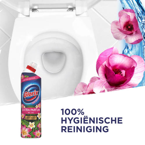 Glorix Toiletreiniger met extra parfum voor een heerlijk fris toilet! - Verwijdert kalkaanslag - Werkt ook onder water - Tot 3x dikker - Voor een stralend wit toilet - Reinigt grondig en hygiënisch - 100% Anti KalkGlorix WC gel anti-kalk met extra parfum is een toiletreiniger die dagelijks gebruikt kan worden. De WC gel verwijdert kalk en reinigt het toilet grondig en hygiënisch en laat een heerlijke frisse geur achter. De unieke dop zorgt ervoor dat zelfs de meest moeilijk plaatsen in het toilet bereikt worden. Probeer ook de nieuwe Glorix Power 5 toiletblokken voor een heerlijk fris en hygiënisch schoon toilet met elke spoelbeurt.