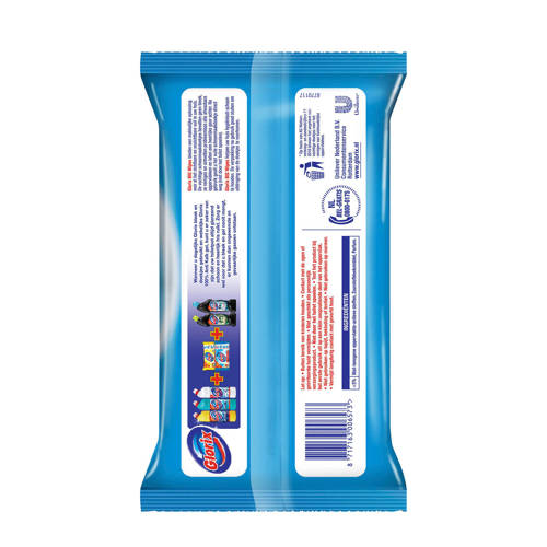 Glorix Big Wipes bevatten geen bleekmiddel en bieden een makkelijke oplossing om uw huis hygiënisch schoon te houden. - Reinigt snel en gemakkelijk alle in huis aanwezige oppervlakken. - 100% hygiëne, bevat geen bleekmiddel. - Extra groot en extra stevig! - Voor een hygiënische reiniging van alle afwasbare oppervlakken. - Heerlijke frisse ocean geur. - Makkelijk en snel in gebruik.In veel huishoudens is het altijd gezellig druk. Je wil dan ook niet veel tijd kwijt zijn aan verplichte klusjes die je liever overslaat. Toch is het belangrijk om je huis goed schoon te houden. Glorix is al bijna 100 jaar een expert op het gebied van hygiëne en begrijpt dit helemaal en heeft de perfecte oplossing. Glorix Big Wipes bieden een makkelijke oplossing voor al het zichtbare en onzichtbare vuil in uw huis. De vochtige schoonmaakdoekjes bevatten geen bleek, ze reinigen en ontvetten probleemloos alle afwasbare oppervlakken en laten een heerlijke geur achter. Na gebruik gooit u het vuile schoonmaakdoekje direct weg (niet door het toilet spoelen). Zo heb je in een mum van tijd je huis fris en schoon, zodat je weer verder kunt met de leuke dingen in het leven! Glorix Big Wipes helpen uw huis hygiënisch schoon te houden. De verpakking na gebruik goed sluiten om uitdroging van de doekjes te voorkomen.Wanneer u dagelijks Glorix bleek en doekjes gebruikt en wekelijks Glorix 100% Anti Kalk gel, kunt u er zeker van zijn dat uw toiletpot altijd glanzend schoon en heerlijk fris ruikt. Zorg er wel voor dat u bleek en gel nooit mengt, er kunnen dan ongewenste en gevaarlijk gassen ontstaan.