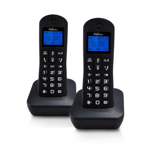 De PDX-525ZT duo van Profoon is een stijlvolle huistelefoon met twee handsets. De telefoon is voorzien van een blauw verlicht display met nummerherkenning en heeft een ingebouwd antwoordapparaat. Verder is de PDX-525ZT uitbreidbaar tot maximaal vier handsets en bel je eenvoudig de 5 laatst ontvangen nummers terug.