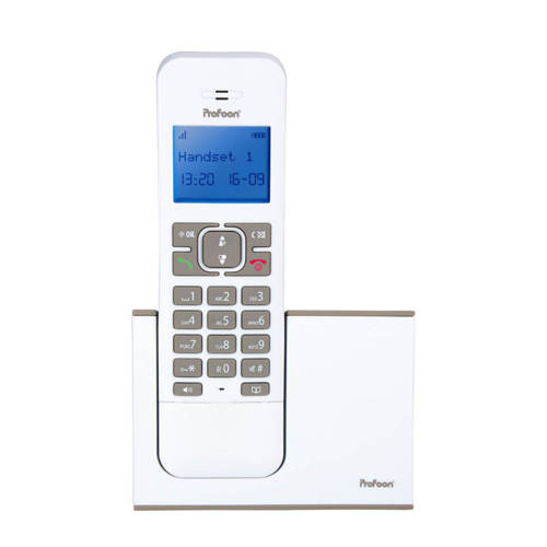 De PDX-8400 is een dect telefoon van Profoon. Dankzij naam- en nummerweergave weet je bijna altijd wie er belt. Je kunt tot 20 contacten opslaan in je telefoon. Je kunt tot wel 10 uur lang gesprekken voeren voordat je de telefoon weer op het basisstation dient te plaatsen om bij te laden. De PDX-8400 dect telefoon schakelt automatisch het vermogen van de telefoon terug zodra de handpost dichterbij het basisstation komt. Telefoon kwijt?Mocht je de handset niet kunnen vinden, je kunt de page toets op het basisstation indrukken waardoor de handset gaat piepen en je deze eenvoudig terug kunt vinden.