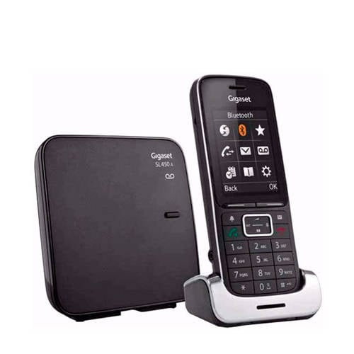 De Gigaset SL450A: een goede combinatie van hoogwaardige materialen, uitstekend vakmanschap en optimale geluidskwaliteit. Het metalen frame streelt niet alleen het oog, het ligt ook perfect in de palm van uw hand. Het TFT-kleurendisplay is verrassend groot, doordat het gebruik maakt van de volledige grootte van de telefoon. De overzichtelijke gebruikersinterface en de heldere kleuren maken de ervaring met deze telefoon compleet. Ook de geluidskwaliteit is uitzonderlijk: de drie verstelbare audioprofielen kunnen worden gewisseld via één functietoets, ook als u handsfree belt. Trouwens: De Gigaset SL450A is voorzien van een geïntegreerd antwoord apparaat met tot 55 minuten opnamen tijd.