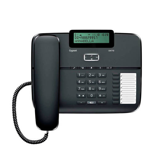 De Gigaset DA710 is een handige analoge huistelefoon met een handig LCD scherm voor naam-en nummerweergave. De toetsen zijn groot genoeg om makkelijk in te drukken en het volume kan je aanpassen met behulp van 3 verschillende levels. Hierdoor mis je nooit meer een telefoontje. Met de hands free optie is het mogelijk om te telefoneren met je handen vrij, zo kan je naast het telefoneren ook nog aantekeningen maken. Wilt je snel contact opnemen met een van de personen die jou recentelijk heeft opgebeld? Met de functie Nummerherhaling kunt je één van de laatste 5 nummers die u heeft gebeld opnieuw kiezen.Daarnaast kan je gemakkelijk telefoonnummers programmeren onder de snelkiestoetsen. Met één druk op de knop bel je de persoon die je nodig bent!