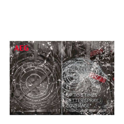 AEG FEE63600PM integreerbare vaatwasser met energieklasse A+++ met ruimte voor 13couverts. Deze afwasmachine reinigt met behulp van een satellietsproeiarm alle hoeken in de machine. De baanbrekende technologie, de eerste ter wereld, houdt in dat water op alle plekken in de afwasautomaat en van de lading. Met behulp van een goede waterstroom worden zelfs volle ladingen of grote items grondig gereinigd, alle plekken worden goed schoongemaakt. Geen uitzonderingen. Geen resten. En het speciale programma voor glas zorgt voor perfecte afwasresultaten en beschermt tegelijkertijd je kostbaarste glas, kristal en porselein. Want je glazen kunnen niet veiliger gereinigd worden, dan met de AEG SoftGrip en SoftSpikes, die je glazen perfect vasthouden zodat ze niet beschadigen. Een flexibele indeling is mogelijk, dankzij de flexibele rekjes, opklapbare bordenrekken en neerklapbare kopjesrekken.Elk onderdeel kan dus op een handige en praktische ruimte worden ingedeeld. De Airdry-technologie geeft je een uitzonderlijke droogprestatie met een natuurlijke luchtstroom. De deur opent automatisch 10 cm in de laatste fase van de cyclus- als de vaat schoon is. Het droogt je vaat op een natuurlijke manier en bespaart zo ook op energiekosten. De Airdry modus is uitschakelbaar als er bijvoorbeeld kinderen in de buurt zijn.De FEE63600PM heeft onder andere de programma's: 30 minuten 60°C, AutoSense 45°-70°, Eco, extra Silent, glas 45°C en intensief 70°C. Verder met een digitaal display met de mogelijkheid om de resttijd af te lezen en de starttijd uit te stellen.. Verder kun je met de Timer Saver functie, de tijdsduur van het programma tot de helft verminderen. Ook handig met feestjes. En de Auto-Off functie schakelt de vaatwasser na een korte standby volledig uit. En het AQUA-CONTROL-systeem biedt een drievoudige bescherming tegen waterschade. De dubbelwandige watertoevoerslang en het geïntegreerde uit- en overloopsysteem zorgen op een betrouwbare manier voor bescherming. En indien het dan toch al eens zou verkeerd lopen, dan zorgt een pomp - zelfs wanneer het apparaat uitgeschakeld is - ervoor dat het water wordt weggepompt.Met:- Watersensor detecteert de vuilgraad en stemt het waterverbruik daarop af: De watersensor meet doorlopend hoe troebel het water is. Hierdoor kan bepaald worden hoe vaak het water ververst moet worden. Bij het afspoelen wordt gemeten of nog een volgende spoelgang nodig is. De mate waarin de watersensor zijn werk doet, is afhankelijk van de programmakeuze.- ExtraSilent: extreem stil programma 42 dB- Sensorlogic watersensor: Gevoelige sensoren meten hoe snel het water in de machine warm wordt - en hoeveel daarvan van het servies terugstroomt. Aan de hand van deze gegevens berekent de SENSORLOGIC de noodzakelijke hoeveelheid water en het maximale energieverbruik.- LED-indicaties voor zout en glansspoelmiddel- Warmwateraansluiting tot 60°C- Extra Hygiëne optie- Auto-off functie- ProWater systeem: derde sproeiarm: Deze vaatwasser heeft vijf sproeiniveaus en een gesloten waterloopsysteem om vuil te verwijderen. Hij werkt automatisch met de juiste druk. In de bovenkorf worden glazen en teer servies voorzichtig gereinigd door o.a. een extra sproeiarm in de bovenkant van de afwasautomaat.- Inverter motor met 10 jaar garantie- Startuitstel tot 24 uur en resttijdindicatie- Bedieningspaneel met tekst en symbolen- In hoogte verstelbare bovenkorf, ook bij volle ladingInbouwmaat (hxbxd): 82-90x60x55 cmLet op: De vaatwasser wordt exclusief het afgebeelde voorfront geleverd.