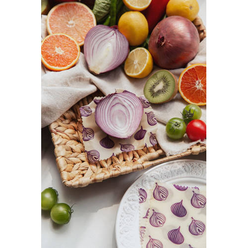 Bee's Wax WrapUi 2 StuksMet de milieuvriendelijke bijenwasdoekvan Bee's Wax verpak en bewaar je jouw etenswaren op een duurzame manier! Dewraps zijn gemaakt van100% organische materialen waaronder bijenwas en katoen. De wrapszijn een duurzame vervanging voor plastic huishoudfolie of aluminiumfolie. Daarnaastkun jeze tot een jaar hergebruiken!De wraps zijn ook antibacterieel en kunnen zowel bewaard worden in de koelkast als in de vriezer.De wraps met een leuke uien print hebbenbeide een formaat van 16 x 16 cm en zijn daarom geschikt voor het verpakken van kleinere groenten of fruit zoals; citroenen, tomaten en uien! Ook zijn ze geschikt om kleine kommen of kruidenbakjes af te dekken.Gebruik en reinigingsinstructieHet gebruik is simpel: de wrap wordt soepel door de warmte van je handen en kan zo makkelijk om schaaltjes, groente, fruit en brood gevouwen worden. Houd verder de wrap weg bij warmte bronnen om het smelten van de wax te voorkomen. Dit is geldt ook voor warme etenswaren.Het reinigen van de doek doe je met koud water en een alcohol vrije zeep. Door alcohol lost de natuurlijke coating namelijk op waardoor de wrap niet meer efficiënt is. Laat verder de bijenwasdoek aan de lucht drogen alvorens deze op te bergen. Als je deze instructies volgt kun je tot een jaar lang gebruik maken van jouw bijenwasdoek!