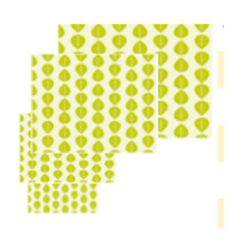 Bee's Wax BijenwasdoekVeganMet de milieuvriendelijke bijenwasdoekvan Bee's Wax verpak en bewaar je jouw etenswaren op een duurzame manier! Dewraps zijn gemaakt van100% organische materialen waarondercandelillawasen katoen. De wraps zijneen duurzame en vegan vervanging voor plastic huishoudfolie of aluminiumfolie. Daarnaastkun jeze tot een jaar hergebruiken!De wraps zijn ook antibacterieel en kunnen zowel bewaard worden in de koelkast als in de vriezer.In deze set zitten vier verschillende formaten met een leuke print van bladeren.Hetformaat 16 x 16 cm is geschikt voor het verpakken van kleinere groenten of fruit zoals; citroenen, tomaten en uien! Ook is dit formaat geschikt om kleine kommenaf te dekken.Het formaat18 x 20 cm is geschikt voor het verpakken van kleine etenswaren zoals halve avocado's en appels. Verder is dit formaat geschikt voor het afdekken van kleine schalen.Het formaat 25 x 28 cm is geschikt voor het afsluiten van een stuk komkommer of het inpakken van wat grotere stukken fruit en groenten. Ook kun je er medium grote kommen mee afdekken.Het formaat 33 x 35.5 cm is ideaal voor het verpakken van sandwiches, halve stokbroden en grote groenten. Daarnaast is het grote formaat ideaal voor het afdekken van grote kommen of borden!Gebruik en reinigingsinstructieHet gebruik is simpel: de wrap wordt soepel door de warmte van je handen en kan zo makkelijk om schaaltjes, groente, fruit en brood gevouwen worden. Houd verder de wrap weg bij warmte bronnen om het smelten van de wax te voorkomen. Dit is geldt ook voor warme etenswaren.Het reinigen van de doek doe je met koud water en een alcohol vrije zeep. Door alcohol lost de natuurlijke coating namelijk op waardoor de wrap niet meer efficiënt is. Laat verder de bijenwasdoek aan de lucht drogen alvorens deze op te bergen. Als je deze instructies volgt kun je tot een jaar lang gebruik maken van jouw bijenwasdoek!