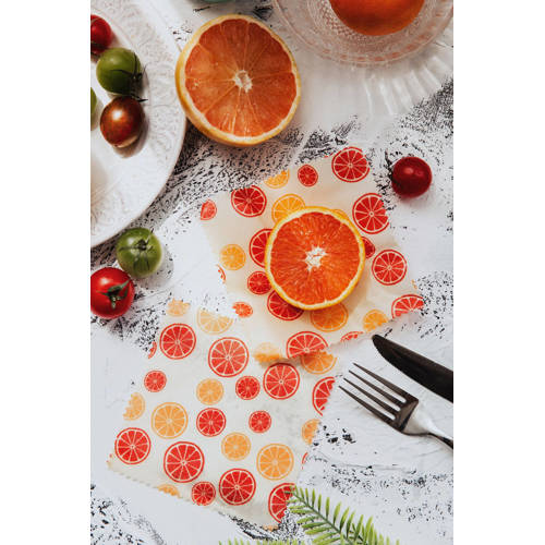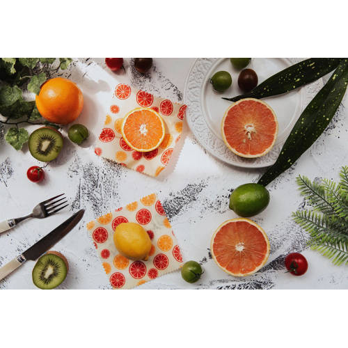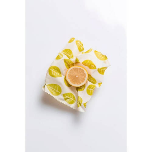 Bee's Wax Bijenwasdoek CitrusMet de milieuvriendelijke bijenwasdoekvan Bee's Wax verpak en bewaar je jouw etenswaren op een duurzame manier! Dewraps zijn gemaakt van100% organische materialen waaronder bijenwas en katoen. De doeken zijn een duurzame vervanging voor plastic huishoudfolie of aluminiumfolie. Daarnaastkun jeze tot een jaar hergebruiken!De wraps zijn ook antibacterieel en kunnen zowel bewaard worden in de koelkast als in de vriezer.De wraps met citrus design hebbenbeide een formaat van 16 x 16 cm en zijn daarom geschikt voor het verpakken van kleinere groenten of fruit zoals; citroenen, tomaten en uien! Ook zijn ze geschikt om kleine kommen of kruidenbakjes af te dekken.Gebruik en reinigingsinstructieHet gebruik is simpel: de wrap wordt soepel door de warmte van je handen en kan zo makkelijk om schaaltjes, groente, fruit en brood gevouwen worden. Houd verder de wrap weg bij warmte bronnen om het smelten van de wax te voorkomen. Dit geldt ook voor warme etenswaren.Het reinigen van de doek doe je met koud water en een alcohol vrije zeep. Door alcohol lost de natuurlijke coating namelijk op waardoor de wrap niet meer efficiënt is. Laat verder de bijenwasdoek aan de lucht drogen alvorens deze op te bergen. Als je deze instructies volgt kun je tot een jaar lang gebruik maken van jouw bijenwasdoek!