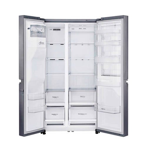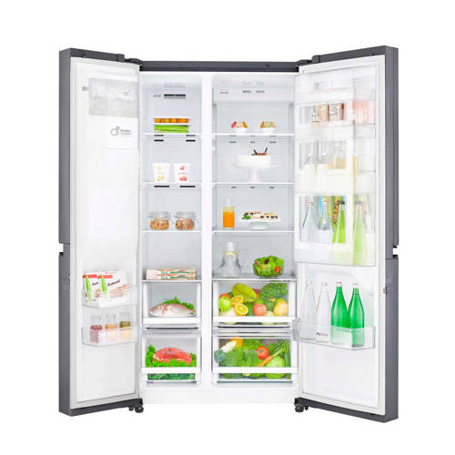 Met de LG GSJ470DIDVL Amerikaanse koelkast heb je veel ruimte en comfort. De GSJ470DIDVL heeft een netto koelinhoud van maar liefst 405 liter en een vriesgedeelte met een inhoud van 196 liter. Hij is zuinig met energie en zorgt door zijn moderne opties voor een nog langere houdbaarheid van groente en fruit. Je kunt snel de meest gebruikte producten uit de door-in-door pakken. Dit door-in-door-systeem zorgt niet alleen voor extra overzicht, maar levert je ook nog 9% extra ruimte op. Het LG Door-in-Doorsysteem zorgt ervoor dat je tijdens het openen van je koelkast bijna 50% minder koude lucht kwijtraakt. De Amerikaanse koelkast hoeft dus minder hard te werken en is daardoor zuinig met energie. Met het waterdispenser kun je jezelf trakteren op een verkoelend glaasje water.Op jaarbasis verbruikt deze Amerikaanse koelkast 419 kWu. Deze prestatie levert hem een plek op in de zuinige A+ energie-efficiëntieklasse. De motor van je koelkast bevat een inverter linear compressor die zeer zuinig en duurzaam werkt.Je kunt de deurschappen en legplanken, van veiligheidsglas, zelf indelen op de door jou gewenste hoogte. De schappen en planken zijn gemakkelijk te verwijderen en mogen in de afwasmachine gereinigd worden.Als je groente en fruit langere tijd bewaart, kan er vocht in je groentelade komen. Hierdoor krijgen micro-organismen meer kans om te woekeren en je verse levensmiddelen aan te tasten. Echter, de LG Amerikaanse koelkast GSJ470DIDVL heeft de beschikking over Moist Balance Crisper-technologie. Hiermee wordt overtollig vocht uit je groentelade verwijderd. Daardoor blijft je groente en fruit veel langer goed. In het vriesgedeelte van de LG Amerikaanse koelkast GSJ470DIDVL zie je een aantal transparante lades. Daarmee creëer je overzicht en kun je in één oogopslag zien waar je jouw vlees en vis bewaard hebt.