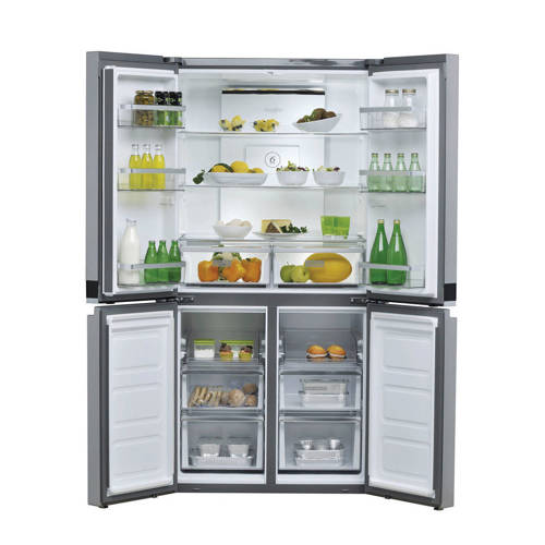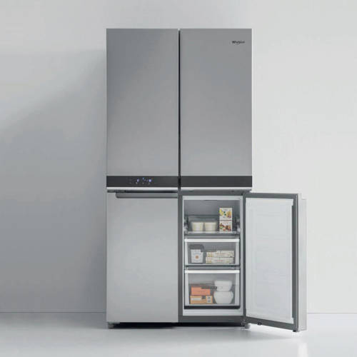 Deze Whirlpool WQ9B1L Amerikaanse koelkast met energieklasse A+, heeft een totale netto capaciteit van 591 liter waarvan 409 liter koel en 384 liter vries. Het koelgedeelte heeft 2 groetelades, 2 legplateaus, 6 deurvakken en een flessenrek. Het vriesgedeelte heeft 6 legplateaus.Tevens is de WQ9B1L voorzien van handige transportwieltjes.Met de energieklasse A+ geeft dit Whirlpool apparaat zowel ideale resultaten als een zeer efficiënt energieverbruik. De grote inhoud van deze Amerikaanse koelkast van Whirlpool biedt alle ruimte die je nodig heeft om jouw voedsel te bewaren. De 6TH SENSE FreshLock technologie bewaart voedsel langer in optimale omstandigheden dankzij nauwkeurige en constante regeling van de temperatuur. Geniet bovendien van de rust in je keuken met slechts 37,5 dB dankzij de Inverter motor.FlexiFreezeHet ruime FlexiFreeze-compartiment past zich aan jouw behoeften aan, zodat je het juiste temperatuurniveau kunt selecteren. Soft Freeze -7°C: vermijd het ontdooiproces voor bevroren voedsel dat je binnen een week zult eten. Je kunt voedsel direct uit de vriezer in de pan leggen. Milde bevriezing -12°C: houd ijs en desserts in optimale conditie om direct te serveren. Diepvriezen -18°C: Optimale bewaartemperatuur om de voedingswaarde van jouw producten te behouden.SnelvriesfunctieMet FastFreeze stelt jou de temperatuur op 10 graden kouder in dan de laagste instelling om voedsel snel in te vriezen om zo de voedingswaarde te behouden. De NoFrost technologie vermindert de luchtvochtigheid binnen de vriezer waardoor aanvriezing geen kans krijgt.