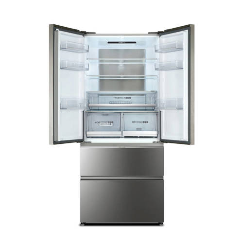 Deze Whirlpool W7 821O OX koelvriescombinatie, in de kleur RVS, heeft energieklasse A++. Deze grote koelvriescombinatie heeft een koelruimte van 234 liter en een vriesruimte van 104 liter.Verder word het koelkast gedeelte automatisch ontdooit, terwijl het diepvriesgedeelte is voorzien van Whirlpools No Frost systeem. Doordat de koude lucht in de koel- en vriesruimte zijn gescheiden, is er voldoende vocht aanwezig om het voedsel optimaal te bewaren.Een energiezuinige LED binnenverlichting vergemakkelijkt het vinden van je voedsel. Tevens beschikt de koelvriescombinatie over een invriesvermogen van 10 kg per 24 uur en een bewaartijd bij stroomuitval van 17 uur. De koelvriescombinatie is uitgevoerd in een RVS-Look die voorzien is met een anti-vingerdruk behandeling, deze zorgt ervoor dat vingerafdrukken, stof en krassen eenvoudig te verwijderen zijn. Reinigen is nu makkelijker dan ooit.Fresh Box+Groente en fruit blijven tot 15 dagen vers . Een lade met een schuifregelaar voor regeling van de luchtvochtigheid die je in staat stelt om groente en fruit tot 15 dagen vers te houden.No FrostHet NoFrost systeem zorgt ervoor dat er geen ijsvorming meer ontstaat, ontdooien behoort tot het verleden. Via de Multiflow luchtstroom wordt de koude lucht geventileerd in het vriesgedeelte om ijsvorming te vermijden. IJs bemoeilijkt namelijk de werking van het apparaat. Diepgevroren voedsel plakt niet langer aan elkaar en blijft gedurende langere periodes houdbaar. En omdat er geen ijsvorming ontstaat, gaat er geen ruimte verloren en kun je elke centimeter benutten.6th Sense ControlTechnologie die snel de ideale temperatuur herstelt. 6TH SENSE technologie detecteert constant temperatuurvariaties door externe oorzaken (bijvoorbeeld het openen van de deur) en herstelt snel de ideale temperatuur voor een optimaal voedselbehoud, zowel in de koelkast als in de vriezer. Dit voorkomt vriesbrand op het voedsel dat in de vriezer bewaard wordt.SnelvriesfunctieSneller vriezen. Met FastFreeze stel je de temperatuur op 10 graden kouder in dan de laagste instelling om voedsel snel in te vriezen om zo de voedingswaarde te behoudenEnergiebesparingUltra snel temperatuurherstel. De innovatieve Energiebesparing technologie biedt ultra snel temperatuurherstel waardoor het energieverbruik verlaagd wordt en voedsel langer vers blijft.Glazen legplateauEen passie voor schoonheid in elk detail. Deze Whirlpool koelkast heeft glazen legplateaus en combineert hiermee design en functionaliteit voor de beste gebruikerservaring.Wijziging draairichting deurDe draairichting van de deur(en) is te wijzigen naar eigen inzicht. Het is door de aanwezige elektronica niet eenvoudig dit zelf te doen. Je kunt de servicedienst van Whirlpool in je regio benaderen dit voor een vergoeding voor je te regelen. Mocht je toch besluiten om dit klusje zelf te klaren, valt de eventuele schade die wordt veroorzaakt bij pogingen om de deuropening om te draaien niet onder de garantie van Whirlpool. Wehkamp kan deze service helaas niet aanbieden.
