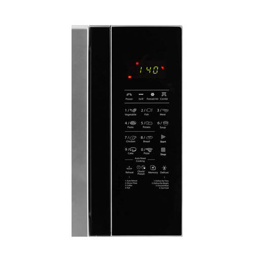 SamsungMC28H5013AK combimagnetron; heteluchtoven, grill, magnetron met een inhoud van28 liter. DeMC28H5013AK heeft onder andere een uitschakelbaar draaiplateau met een diameter van 32 cm, bediening door middel vandruktoetsenen een helder Ice Blue LED display. Tevens beschikt de combimagnetron over 5 ontdooiprogramma's, 30 kookprogramma's waaronder een yoghurt en deegprogramma en een voorverwarm- en warmhoudfunctie. Verder beschikt de combimagnetron overkeramische binnenwanden, klokfunctie 12/24 uur instelling) eindsignaal, kinderbeveiliging en een hittesensor. Deze combimagnetron is bijzonder geschikt voor drukke gezinnen; zo kan je bijvoorbeeld het draaiplateau stilzetten om iedere centimeter ruimte in het apparaat te benutten en ook vierkante borden en schalen te kunnen gebruiken. Het apparaat gaat een stap verder dan vergelijkbare magnetrons en je kan grotere pannen en ovenschotels makkelijk verhitten, zodat je meer tijd over hebt om gezellig aan tafel van de maaltijd te genieten.Altijd verse zelfgemaakte yoghurtJe kunt elk moment van de dag deeg, beslag of verse yoghurt maken dankzij de gistfunctie met geavanceerde fermentatietechnologie die precies de juiste temperatuur instelt, en je gezin bij ontbijt, lunch en diner een nóg grotere verscheidenheid aan smakelijk, vers eten voorzetten.Keramische binnenwandenDe antibacteriële binnenzijde zorgt voor meer hygiëne.Alsje niet iedere keer zelfjecombimagnetron wilt schoonmaken, is keramisch emaille het ideale alternatief. Om te beginnen is het duurzaam, zoals eigenlijk elk keukenapparaat hoort te zijn. Hoeje de magnetron ook gebruikt, het emaille zal geen krassen vertonen zoals roestvrij staal en er zullen geen barsten verschijnen zoals bij plastic. Daarnaast is het makkelijk schoon te houden.Je hebt alleen maar een vochtige doek nodig om de spatten weg te vegen. Tot slot zorgt de geavanceerde wandcoating ervoor dat bacteriën en geuren verdwijnen.HittesensorDe hittesensor meet iedere seconde de temperatuur van het gerecht en checkt of het gerecht al gaar is. De slimme hittesensor maakt drie hoofdfuncties mogelijk: ontdooien, opwarmen en bereiden.Specificaties- Magnetronvermogen:900 watt- 6 vermogen standen 100-180-300-450-600-900 Watt- Grillvermogen: 1500 watt- Hete lucht 2100 watt-Boven/onderwarmte- Type bediening: druk-draaitoetsen- Kast inhoud:28 liter- Diameter draaiplateau: 32 cm- Magnetron - grill- Magnetron - hete lucht- Hetelucht-grill- Temperatuur hetelucht (max): 200 graden- Temperatuur hetelucht (min): 40 graden- Aantal ontdooiprogramma's: 5- Ovenverlichting- Kinderbeveiliging- Timer- Plaatsing: vrijstaand- Materiaal: keramisch emaille- Kleur: zwart- Garantietermijn: 2 jaar fabrieksgarantieAfmetingen en gewicht:-Afmeting hxbxd: 31x51,7x47,5 cm-Binnenafmeting hxbxd: 23.5x35.8x32.7 cm- Gewicht: 17.5
