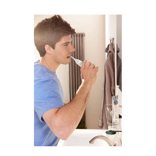 1. Verwijder tot 7x meer tandplak met onze InterCare-opzetborstel 2. Maakt het tandvlees in slechts 2 weken gezonder 3. Creëert microbubbels die diep tussen de tanden reinigen Reinig tussen de tanden en op lastig bereikbare plekken.Met geavanceerde borsteltechnologie en extra lange borstelharen helpt de InterCare tot 7x meer plak tussen de tanden te verwijderen dan een gewone tandenborstel, zodat de gezondheid van het tandvlees in slechts twee weken verbetert.Verwijder tot 7 keer meer tandplakKlik onze InterCare-opzetborstel erop voor gezonder tandvlees in slechts 2 weken. Extra lange borstelharen verwijderen meer tandplak op moeilijk bereikbare plekken en tussen de tanden voor gezond tandvlees.Extra lange borstelharenDe InterCare-opzetborstel is voorzien van extra lange, dicht op elkaar geplaatste hoogwaardige borstelharen om tandplak diep tussen uw tanden aan te pakken. Het is klinisch bewezen dat na 2 weken uw tandvlees minder bloedt en dat ontstekingen afnemen.BrushSync-koppeling van poetsstandenMet onze BrushSync-koppeling van poetsstanden krijgt u altijd de best mogelijke reiniging. De InterCare-opzetborstel werkt samen met uw Philips Sonicare-handvat met BrushSync waardoor automatisch de optimale poetsstand en het beste intensiteitsniveau voor uitzonderlijke reiniging wordt geselecteerd. U hoeft alleen te beginnen met poetsen.Vervanging van de opzetborstelOpzetborstels worden minder effectief als ze 3 maanden zijn gebruikt, maar met BrushSync krijgt u een seintje als uw borstel toe is aan vervanging. Uw slimme tandenborstel houdt bij hoe vaak en hoe hard u poetst en stelt u op de hoogte wanneer het tijd is voor een vervangende opzetborstel. Hebt u nog geen slimme Philips Sonicare-tandenborstel? U hoeft alleen maar de blauwe vervangingsborstelharen in de gaten te houden. Zodra deze wit worden, is het tijd om de opzetborstel te vervangen.Eenvoudig vast te klikkenUw InterCare-opzetborstel past perfect bij iedere Philips Sonicare-tandenborstel, behalve PowerUp Battery en Essence. Klik de opzetborstel vast of haal hem er eenvoudig af voor gemakkelijk vervangen en schoonmaken.De enige echte sonische technologieUw Sonicare-opzetborstel en -handvat zijn het ultieme team. Ze versterken onze sonische technologie en zorgen voor een ongeëvenaarde reiniging. Snelle trillingen in uw handvat zorgen voor 31.000 poetsbewegingen per minuut zodat uw tandpasta goed gaat schuimen en diep tussen uw tanden en langs uw tandvlees komt voor een uitzonderlijke reiniging.Poetsen met een gerust hartAlle Philips Sonicare-opzetborstels zijn veilig en zacht voor de tanden en het tandvlees. Tijdens proeven wordt iedere opzetborstel uitgebreid getest, om er zeker van te zijn dat ze bij elke poetsbeurt uitzonderlijke prestaties leveren en lang meegaan.