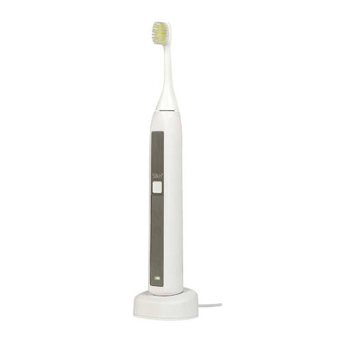 Wil je een parelwit gebit? Kijk dan niet verder dan de Silk’n ToothWave. De innovatieve sonische tandenborstel die het allerbeste bevordert op het gebied van tandheelkundige gezondheid en hygiëne met behulp van de nieuwste RF-technologie. Dit is één product dat je gegarandeerd laat glimlachen!Nieuwe technologieDe Silk'n ToothWave biedt het ultieme in tandhygiëne met behulp van de nieuwste Klinisch bewezen technologie die veel verder gaat dan poetsen. Deze sonische tandenborstel is de eerste in zijn soort die de begeerde naam Silk'n draagt en doet meer dan alleen het reinigen van de tanden. In feite levert het op alle niveaus van mondhygiëne. Met behulp van de gepatenteerde Dental RF-technologie verwijdert de Silk'n ToothWave verkleuringen, vlekken en tandsteen om tandvleesproblemen en tandbederf te voorkomen.Voordelen- De allereerste die werkt met de revolutionaire DentalRF technologie.- Klinisch bewezen en gepatenteerde technologie.- Verwijdert tandplak, verkleuringen, vlekken en zelfs tandsteen.- Maakt tanden zichtbaar witter.- Voorkomt bloedend tandvlees, tandvleesaandoeningen en tandbederf.- Zorgt voor schonere en gladdere tanden gedurende de hele dag.- Tot twee weken lang te gebruiken na één keer opladen.- Waterproof (IP67): geschikt voor gebruik onder de douche en in bad.- Inclusief oplaadstation en USB-muuradapter.Inclusief twee opzetborstels: klein en groot.