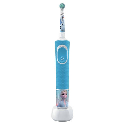 Speciale Gevoelige tanden modusDe Oral-B Kids tandenborstel reinigt de tanden van kinderen voorzichtig met een speciale, kindvriendelijke Gevoelige tanden modus. Bovendien heeft de ronde opzetborstel extra zachte borstelharen die zacht zijn voor gevoelig tandvlees. Personaliseer hem met stickersDe Oral-B Kids tandenborstel wordt geleverd met vier Disney Frozen-stickers die rond het borstelhandvat gewikkeld kunnen worden zodat deze tandenborstel de favoriet van uw kind wordt. Meest aanbevolen door tandartsen*Oral-B is het meest aanbevolen tandenborstelmerk door tandartsen wereldwijd.* Alle Oral-B tandenborstels zijn ontworpen in samenwerking met tandartsen om uw kinderen een zachte en effectieve reiniging te geven op elke leeftijd en in elke fase van hun ontwikkeling.*Gegevens gebaseerd op studies bij een representatief panel tandartsen over gans de wereld voor P&G tussen oktober 2016 en mei 2018.Extra zachte borstelharenVoor een zachte en superieure reiniging**, heeft de opzetborstel van Oral-B Kids extra zachte borstelharen die speciaal ontworpen zijn voor een kleinere mond en zacht zijn voor het tandvlees.**vs. een gewone manuele tandenborstelDisney Magic Timer App90% van de kinderen poetst langer met de gratis Disney Magic Timer App van Oral-B. Tandenpoetsen wordt superleuk omdat ze virtuele stickers van hun favoriete Disney-personages verdienen als ze twee minuten lang poetsen, zoals aanbevolen door tandartsen. De app is gratis beschikbaar in de Apple Store en Google Play. Ingebouwde timer voor twee minutenDe Oral-B Kids tandenborstel wordt geleverd met een ingebouwde timer zodat uw kind gedurende de aanbevolen twee minuten poetst, wat helpt levenslange goede poetsgewoontes aan te leren.Oplaadbare batterijDe oplaadbare batterij van de Oral-B Kids tandenborstel gaat na een oplaadbeurt acht dagen mee. Een leuke poetstijd is altijd mogelijk met een simpele druk op de aan-knop. De tandenborstel wordt geleverd met een oplaadstation dat gemakkelijk op iedere wastafel past.