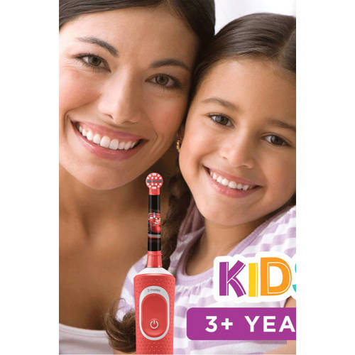 Speciale Gevoelige tanden modusDe Oral-B Kids tandenborstel reinigt de tanden van kinderen voorzichtig met een speciale, kindvriendelijke Gevoelige tanden modus. Bovendien heeft de ronde opzetborstel extra zachte borstelharen die zacht zijn voor gevoelig tandvlees. Personaliseer hem met stickersDe Oral-B Kids tandenborstel wordt geleverd met vier Disney Cars-stickers die rond het borstelhandvat gewikkeld kunnen worden zodat deze tandenborstel de favoriet van uw kind wordt. Meest aanbevolen door tandartsen*Oral-B is het meest aanbevolen tandenborstelmerk door tandartsen wereldwijd.* Alle Oral-B tandenborstels zijn ontworpen in samenwerking met tandartsen om uw kinderen een zachte en effectieve reiniging te geven op elke leeftijd en in elke fase van hun ontwikkeling.*Gegevens gebaseerd op studies bij een representatief panel tandartsen over gans de wereld voor P&G tussen oktober 2016 en mei 2018.Extra zachte borstelharenVoor een zachte en superieure reiniging**, heeft de opzetborstel van Oral-B Kids extra zachte borstelharen die speciaal ontworpen zijn voor een kleinere mond en zacht zijn voor het tandvlees.**vs. een gewone manuele tandenborstelDisney Magic Timer App90% van de kinderen poetst langer met de gratis Disney Magic Timer App van Oral-B. Tandenpoetsen wordt superleuk omdat ze virtuele stickers van hun favoriete Disney-personages verdienen als ze twee minuten lang poetsen, zoals aanbevolen door tandartsen. De app is gratis beschikbaar in de Apple Store en Google Play. Ingebouwde timer voor twee minutenDe Oral-B Kids tandenborstel wordt geleverd met een ingebouwde timer zodat uw kind gedurende de aanbevolen twee minuten poetst, wat helpt levenslange goede poetsgewoontes aan te leren.Oplaadbare batterijDe oplaadbare batterij van de Oral-B Kids tandenborstel gaat na een oplaadbeurt acht dagen mee. Een leuke poetstijd is altijd mogelijk met een simpele druk op de aan-knop. De tandenborstel wordt geleverd met een oplaadstation dat gemakkelijk op iedere wastafel past.