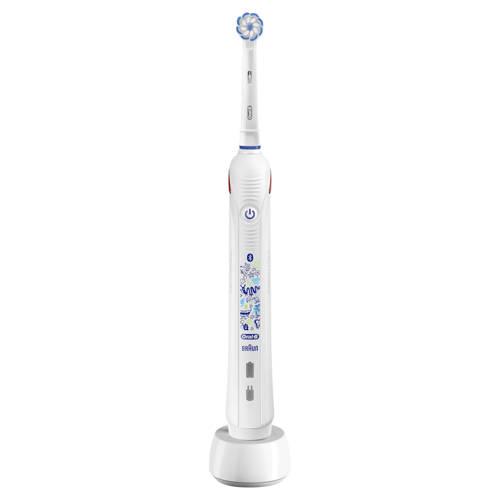 PoetsdruksensorAls uw kind te hard poetst, knippert er een rood lampje op het borstelhandvat en zal de poetssnelheid automatisch verminderd worden. Dit zal uw kind aanmoedigen om de juiste poetstechniek te leren terwijl het ook hun tandvlees beschermt. Extra zachte borstelharenVoor een zachte en effectieve reiniging heeft de Oral-B Junior Smart Elektrische tandenborstel extra zachte, ultradunne borstelharen op een ronde opzetborstel die zacht zijn voor het tandvlees. Ultradunne borstelharen verwijderen tot 100% meer tandplak dan een gewone manuele tandenborstel. Meest aanbevolen door tandartsen*Oral-B is het meest aanbevolen tandenborstelmerk door tandartsen wereldwijd.* Alle Oral-B tandenborstels zijn ontworpen in samenwerking met tandartsen om uw kinderen een zachte en effectieve reiniging te geven op elke leeftijd en in elke fase van hun ontwikkeling.*Gegevens gebaseerd op studies bij een representatief panel tandartsen over gans de wereld voor P&G tussen oktober 2016 en mei 2018. Oral-B FunZone AppDe Oral-B FunZone App is een speelse manier om kinderen te helpen hun dagelijkse mondverzorgingsgewoonten te verbeteren. Ze kunnen hun poetsvoortgang volgen met realtime feedback en leuke fotofilters ontgrendelen als een beloning door twee minuten lang te poetsen, zoals aanbevolen door tandartsen. Beschikbare fotofilterthema’s zijn bijvoorbeeld afbeeldingen van schattige dieren, leuke anime, snoezige katten en griezelige spookhuizen. Ingebouwde timer voor twee minutenDe Junior Smart Elektrische tandenborstel wordt geleverd met een ingebouwde timer, zodat uw kind gedurende de aanbevolen twee minuten kan poetsen.Oplaadbare batterijDe Oral-B Junior Smart Elektrische tandenborstel heeft een oplaadbare batterij die tot twee weken meegaat en wordt geleverd met een oplaadstation dat gemakkelijk op elke wastafel past.