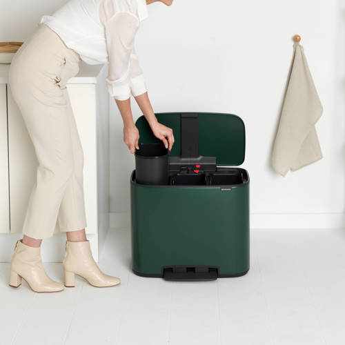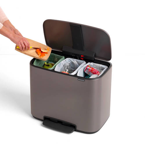 Op zoek naar een stijlvolle manier om je afval te scheiden? Ontdek de modieuze Brabantia Bo pedaalemmer. Een pedaalemmer die zo mooi en handig is, dat je met speels gemak je afval scheidt. Dankzij drie losse binnenemmers van 11 liter kan Bo 3 soorten afval aan. Maar Bo is meer dan mooi. Deze fijne pedaalemmer past perfect tegen een muur of (keuken)kast en spaart dus ruimte. Het geurdichte deksel opent bij een licht tikje met je voet en blijft open zo lang als je wilt. En daarna sluit het fluisterzacht dankzij de soft-close techniek. De antislip bodem beschermt de vloer en houdt de afvalemmer op zijn plaats. Met de aanschaf van deze afvalemmer doneert Brabantia aan The Ocean Cleanup die zich inzet om het plastic in de oceanen -en nu ook rivieren- op te ruimen. Met zo’n mooi initiatief gaan we graag in zee! - Deksel sluit zacht en superlicht te bedienen pedaal - Perfect voor grotere klussen - deksel blijft open - Simpel schoonmaken - uitneembare kunststof binnenemmers - Ruimtebesparend - past strak tegen een wand of in een hoekje - antislip bodem - beschermt de vloer en houdt de afvalemmer op zijn plaats - Reukdichte deksel - Makkelijk weggooien zonder knoeien - grote opening - 3 uitneembare binnenemmers van 11 liter - ideaal voor afval scheiden - Inclusief proefverpakkingen Brabantia PerfectFit afvalzakken (code X) - gemakkelijk en praktisch onzichtbaar aan te brengen - 10 jaar garantie en service - Duurzaam geproduceerd - Cradle-to-Cradle gecertificeerd, niveau Brons