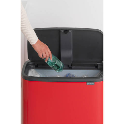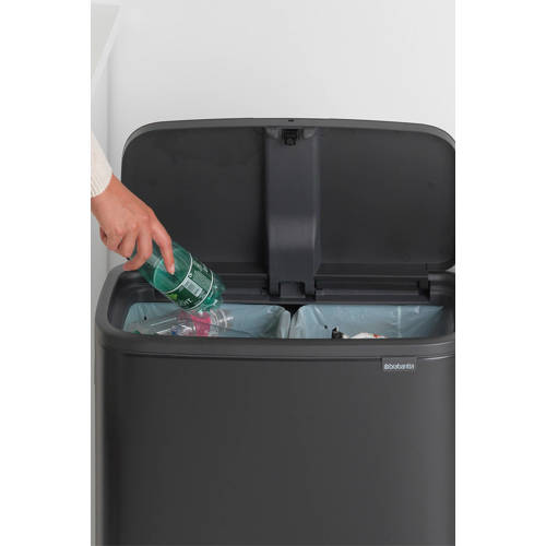 Op zoek naar een mooie oplossing om afval te scheiden? Deze Brabantia Bo Touch Bin combineert een prachtig design met een groot talent voor afval scheiden. Dankzij twee losse binnenemmers van 30 liter kan Bo 2 soorten afval aan. Bo past perfect tegen de muur en is erg stabiel. Makkelijk en licht te bedienen en sluit met de zachtste aanraking. De Bo Touch Bin is ontworpen met hart voor je huis en de planeet. Met de aanschaf van deze afvalemmer help je onze wereld wat schoner te maken want Brabantia gaat plastic uit de wereldse wateren 'vissen'. Voor elke verkochte Bo Touch Bin steunt Brabantia The Ocean Cleanup bij de grootste schoonmaak uit de geschiedenis. Een slim zuiveringssysteem, uitgevonden door de toen 17-jarige Boyan Slat, gebruikt de stromingen in zee en zou in theorie in vijf jaar tijd de helft van het plasticafval in de Stille Oceaan kunnen opruimen. Met zo’n mooi initiatief gaan we graag in zee. Mooi toch?Soft Touch' open- en sluitsysteem/opent stil bij de lichtste aanrakingRuimtebesparend/past strak tegen een wand of in een hoekjeMakkelijk weggooien zonder knoeien/grote openingPerfect voor grotere klussen/deksel blijft openIdeale hoogte/beter voor je rugSimpel schoonmaken/uitneembare kunststof binnenemmers2 uitneembare binnenemmers van 30 liter/ideaal voor afval scheiden thuisMakkelijk te verplaatsen/geïntegreerde handgrepenInclusief proefverpakking Brabantia PerfectFit Afvalzakken (code O)/gemakkelijk en praktisch onzichtbaar aan te brengen10 jaar garantie en serviceCradle to Cradle gecertificeerd/goed doen voelt goed• Inhoud per onderdeel: 2x30
