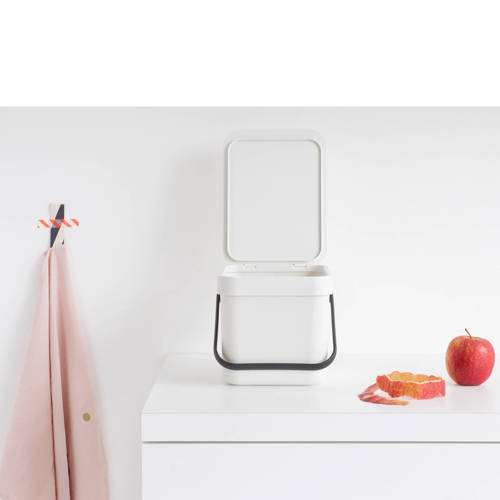 Deze Brabantia Sort & Go afvalemmer, in de kleur wit, heeft een inhoud van 6 liter. Dit kuststof 6 liter-emmertje met stay-open deksel is ideaal voor voor het weggooien van gft-afval op jouw aanrecht. De afvalemmer kan aan de wand bevestigd worden of los op de vloer staan. Wordt geleverd inclusief wandhouder.