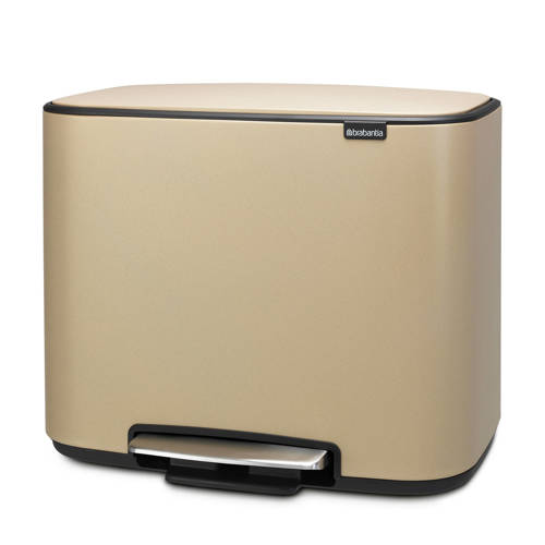 Deze rechthoekige Brabantia Bo pedaalemmer, in de kleur Mineral Golden Beach, met een kunststof binnen emmer heeft een inhoud van 36 liter. Deze mooie pedaalemmer past perfect tegen een muur of (keuken)kast en spaart dus ruimte. Het geurdichte deksel van de Bo opent bij een licht tikje met je voet en blijft open zo lang als je wilt. En daarna sluit het fluisterzacht dankzij de soft-close techniek. De anti-slip bodem beschermt jouw vloer en houdt de afvalemmer op zijn plaats.- Inclusief proefverpakking Brabantia PerfectFit afvalzakken (code R) - gemakkelijk en praktisch onzichtbaar aan te brengen.Met de aanschaf van deze afvalemmer help je onze wereld wat schoner te maken want Brabantia gaat plastic uit de wereldse wateren 'vissen'. Voor elke verkochte Bo pedaalemmer steunt Brabantia The Ocean Cleanup bij de grootste schoonmaak uit de geschiedenis. Een slim zuiveringssysteem, uitgevonden door de toen 17-jarige Boyan Slat, gebruikt de stromingen in zee en zou in theorie in tien jaar tijd de helft van het plasticafval in de Stille Oceaan kunnen opruimen. Met zo’n mooi initiatief gaan we graag in zee! Specificaties- Perfect voor grotere klussen - deksel blijft open- Ruimtebesparend - past strak tegen een wand of in een hoekje- Makkelijk weggooien zonder knoeien - grote opening- Inhoud: 36 liter- Uitneembare kunststof binnenemmer- Deksel sluit zacht - Superlicht te bedienen pedaal- Reukdichte deksel- Gemakkelijk te reinigen - Anti-slip bodem - beschermt de vloer en houdt de afvalemmer op zijn plaats- Materiaal body: staal- Kleur: Mineral Golden Beach- 10 jaar garantie en serviceAfmetingen en gewicht- Afmetingen (hxbxd) 44x54x36,5 cm- Gewicht: 5,507 kg