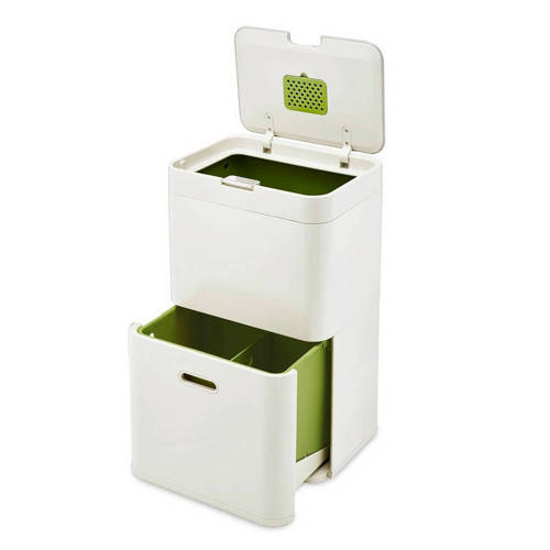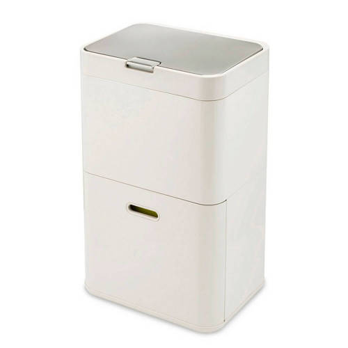 Deze Joseph Joseph Intelligent Waste prullenbak, 48 liter in de kleur Stone, is door zijn hun unieke ontwerp geschikt om snel en gemakkelijk afval milieuvriendelijk te scheiden. De afvalemmer heeft een stevige body en strakke uitstraling. DeIntelligent Waste Totem bestaat uit 2 aparte afvaldelen: een bak voor het reguliere afval, met een inhoud van 24 liter en een lade met een inhoud van 24 liter inclusief een uitneembaar tussenschot om oud papier, plastic en glas te kunnen scheiden. Ook kunnen hier schoonmaak artikelen of plastic zakken opgeslagen worden. Aan de achterkant heeft deIntelligent Waste Totem een handgreep en aan de onderzijde wieltjes waardoor de prullenpak makkelijk te verplaatsen is. In de deksel bevindt zich een geïntegreerd geurfilter waardoor je geen last hebt van vieze luchtjes.Afmetingen en gewicht- Afmetingen (hxbxd) 40x30x66 cm- Gewicht: 9,87 kg