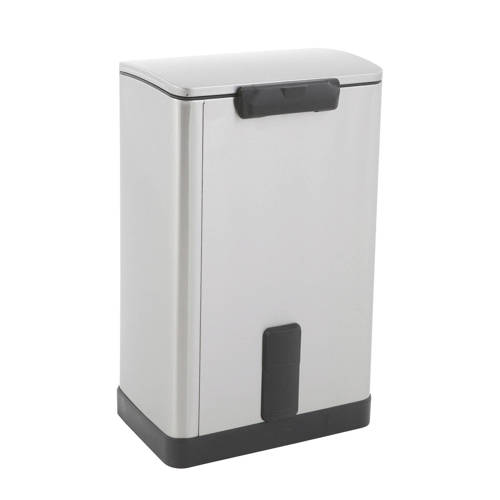 Met deze Brabantia Touch Bin Recycle prullenbak, in de kleur Matt Steel FPP kun jij makkelijk thuis jouw afval scheiden. De prullenbak heeft 2 kunststof binnen emmers : 10 liter voor compost afval en 23 liter voor al het overig afval. Door de 'Soft-Touch' sluiting opent en sluit het deksel geruisloos. De kunststof binnen emmer van 23 liter heeft ventilatiegaatjes, die een vacuüm voorkomen bij het verwisselen van de afvalzak. Door de vlakke achterwand is de Touch Bin Recycle ruimtebesparend tegen een wand te plaatsen. Deze prullenbak wordt geleverd met een proefverpakking van Brabantia PerfectFit afvalzakken (code K voor composteerbaar en code G voor overig afval) .Specificaties- Inhoud: 10 en 23 liter- Brabantia 'Soft-Touch' sluiting- Ruimtebesparend door de vlakke achterwand- Afneembare roestvrij stalen dekselunit- Stevige draaggreep aan achterzijde - Uitneembare kunststof binnen emmers- Kunststof bodemrand - Materiaal body: RVS- Kleur: Matt Steel FPP- 10 jaar garantie en serviceAfmetingen en gewicht- Afmetingen (hxbxd) 72x44x30.5cm- Gewicht: 5.07 kg• Inhoud per onderdeel: 33 (23+10)