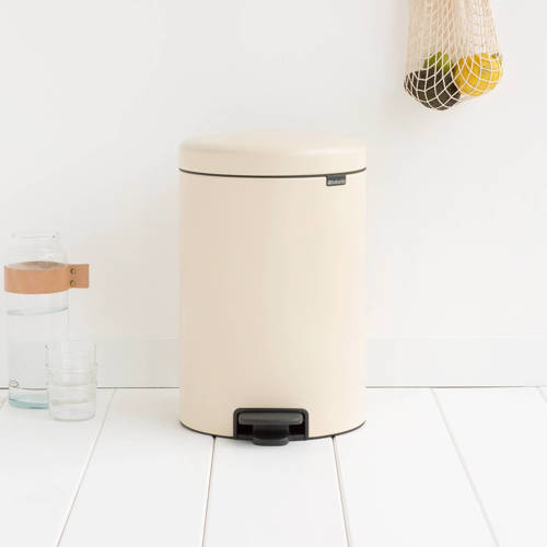 Deze Brabantia newIcon pedaalemmer, in de kleur Almond, met een kunststof binnen emmer heeft een inhoud van 20 liter. Dankzij de anti-slip onderkant en anti-kantel blok is deze pedaalemmer stevig en staat altijd op zijn post. Deze newIcon pedaalemmer is geurdicht, makkelijk te openen, makkelijk te verplaatsen en makkelijk schoon te maken. Dankzij de unieke soft-closure techniek sluit het deksel soepel en stil en kun je eenvoudig afval weggooien zonder te morsen dankzij de grote inwerpopening. De pedaalemmer wordt geleverd met een proefverpakking van Brabantia PerfectFit afvalzakken (code D), deze zijn gemakkelijk en praktisch onzichtbaar aan te brengen.Bovendien help je met de aanschaf van deze pedaalemmer onze wereld wat schoner te maken want Brabantia gaat plastic uit de wereldse wateren 'vissen'.Voor elke verkochte newIcon pedaalemmer, doneert Brabantia namelijk aan The Ocean Cleanup, de grootste schoonmaak uit de geschiedenis. The Ocean Cleanup ontwikkelt vooruitstrevende technieken om de oceanen te zuiveren. De uitvinding van de destijds 17-jarige Boyan Slat verzamelt het afval door middel van een passief systeem van enorm lange, drijvende barrières en die de stroming het werk laat doen. Volgens modelberekeningen kan dit systeem in tien jaar tijd de helft van de Great Pacific Garbage Patch, de plastic soep in de Stille Oceaan, opruimen. Momenteel wordt een prototype van dit systeem getest in de Noordzee'.Specificaties- Inhoud: 20 liter- Deksel sluit geruisloos - Superlicht te bedienen pedaal- Reukdichte deksel- Gemakkelijk te reinigen - Uitneembare binnen emmer- Anti-slip bodem - Handgreep in dekselscharnier- Materiaal body: staal- Kleur: Almond- 10 jaar garantie en serviceAfmetingen en gewicht- Afmetingen (hxbxd) 46x29x33,5 cm- Gewicht: 2,78 kg