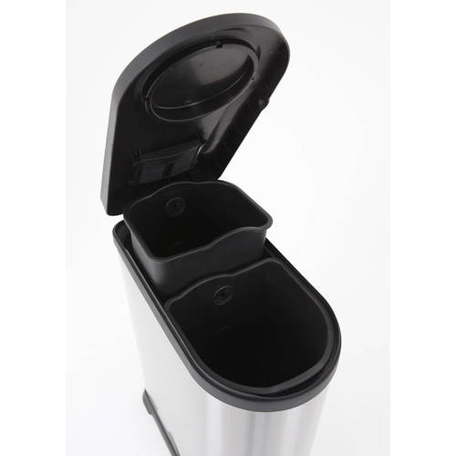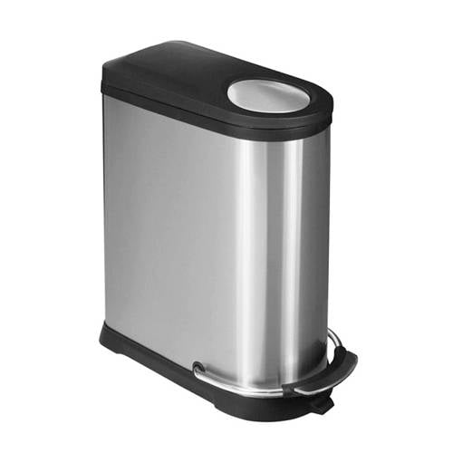 De EKO Recycle Viva Step Bin is een smalle, halfronde pedaalemmer van mat RVS met 2 kunststof binnenemmers van 16 en 20 liter zodat jij jouw afval makkelijk kunt scheiden. De pedaalemmer is voorzien van een gedempte kunststof deksel en een stevig metalen pedaalsysteem. Aan de binnenzijde van het deksel is ruimte voor een carbonfilter om geurtjes te voorkomen. Specificaties- Inhoud: 16 + 20 liter- Inner Line- Fingerprintproof- Soft close- Plastic zak fixer- Kleur: mat RVS- Garantietermijn: 3 jaarAfmetingen en gewicht- Afmetingen(hxbxd): 69x58x32cm- Gewicht: 7.1 kg• Inhoud per onderdeel: 36 (20+16)