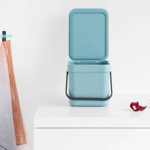 Deze Brabantia Sort & Go afvalemmer, in de kleur mint, heeft een inhoud van 6 liter. Dit kuststof 6 liter-emmertje met stay-open deksel is ideaal voor voor het weggooien van gft-afval op jouw aanrecht. De afvalemmer kan aan de wand bevestigd worden of los op de vloer staan. Wordt geleverd inclusief wandhouder.