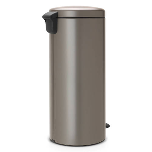 Deze hoge Brabantia newIcon pedaalemmer met een kunststof binnen emmer heeft een inhoud van 30 liter. Dankzij de anti-slip onderkant en anti-kantel blok is deze pedaalemmer stevig en staat altijd op zijn post. Deze newIcon pedaalemmer is geurdicht, makkelijk te openen, makkelijk te verplaatsen en makkelijk schoon te maken. Dankzij de unieke soft-closure techniek sluit het deksel soepel en stil en kun je eenvoudig afval weggooien zonder te morsen dankzij de grote inwerpopening. De pedaalemmer wordt geleverd met een proefverpakking van Brabantia PerfectFit afvalzakken (code G), deze zijn gemakkelijk en praktisch onzichtbaar aan te brengen.Bovendien help je met de aanschaf van deze pedaalemmer onze wereld wat schoner te maken want Brabantia gaat plastic uit de wereldse wateren 'vissen'.Voor elke verkochte newIcon pedaalemmer, doneert Brabantia namelijk aan The Ocean Cleanup, de grootste schoonmaak uit de geschiedenis. The Ocean Cleanup ontwikkelt vooruitstrevende technieken om de oceanen te zuiveren. De uitvinding van de destijds 17-jarige Boyan Slat verzamelt het afval door middel van een passief systeem van enorm lange, drijvende barrières en die de stroming het werk laat doen. Volgens modelberekeningen kan dit systeem in tien jaar tijd de helft van de Great Pacific Garbage Patch, de plastic soep in de Stille Oceaan, opruimen. Momenteel wordt een prototype van dit systeem getest in de Noordzee'.Specificaties- Inhoud: 30 liter- Deksel sluit geruisloos - Superlicht te bedienen pedaal- Reukdichte deksel- Gemakkelijk te reinigen - Uitneembare binnen emmer- Anti-slip bodem - Handgreep in dekselscharnier- Materiaal body: staal- Kleur: Platinum- 10 jaar garantie en serviceAfmetingen en gewicht- Afmetingen (hxbxd) 67.5x30x34 cm- Gewicht: 3.715 kg