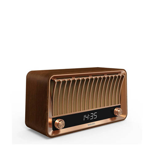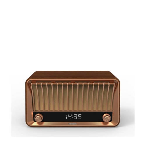Deze Philips TAVS700/10 is een ode aan de Philips Philetta 254 en de jaren '50! Zijn schitterende retro-look van toen met de technische snufjes van nu maakt dat deze Bluetooth radio voor jong en oud is.De radio beschikt tevens over een heldere digitale klok. Met de bedieningsknoppen pas je de intensiteit van het licht aan naar je eigen behoefte. Om niet te lang te hoeven zoeken kun je tot 40 zenders instellen op de radio.Is er even geen leuke muziek op de radio of wil je gewoon je eigen playlist horen? Via Bluetooth verbind je zeer eenvoudig met deze TAVS700/10 en speel je jouw favoriete nummers of podcasts af. Wie denkt dat, naast het uiterlijk, het geluid ook retro is komt bedrogen uit. Deze Philips TAVS700/10 Bluetooth radio heeft twee luidsprekers van 3 inch en een bas-reflexpoort die voor een krachtige basrespons zorgt.