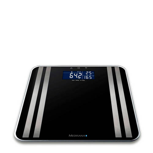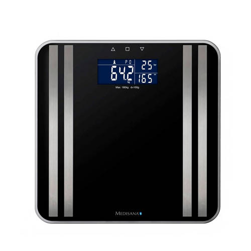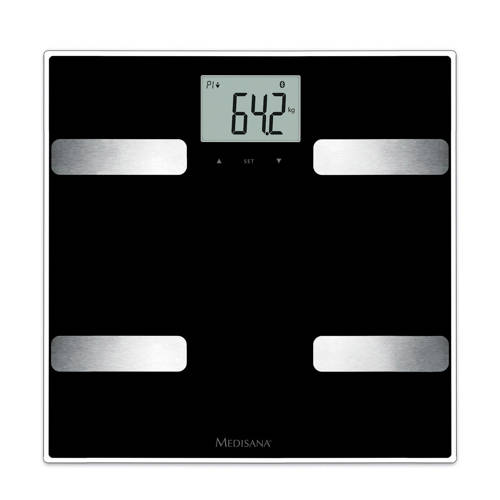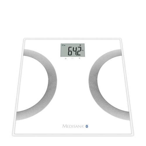 Het grote LCD-display met wit verlichte cijfers en heldere achtergrondverlichting is ook bij mindere lichtomstandigheden optimaal afleesbaar. De BS 450 beschikt verder over een handige step-on-inschakeltechniek. Door de weegschaal in combinatie met de gratis VitaDock+ App te gebruiken, worden je gegevens niet alleen in een App verzameld, maar ook zijn deze na synchronisatie naar VitaDock Online, online opgeslagen en oproepbaar. Een unieke combinatie die ideaal is bij het op een gezonde wijze behalen van de persoonlijke gewichtsdoelstellingen en je inzicht geeft in je overige lichaamswaarden zoals het vetpercentage, het vochtpercentage en je spiermassa. Een ideale begeleiding bij een efficiënt persoonlijk fitnessprogramma.Extra functies met de gratis VitaDock appDuidelijke grafieken met gewenste informatie zijn altijd voorhanden en deze data is tevens te synchroniseren naar verschillende mobiele apparaten van zowel Apple als Android, of eenvoudig online achterje laptop of PC. Met de BS 450 heb je eindelijk inzicht in jouw gewicht en lichaamswaarden, wanneer en waarje maar wilt. Koppel deze mooi vormgegeven weegschaal met onzichtbaar weggewerkte elektroden aan je smartphone (Android & iOS) en ontdek alle voordelen van de VitaDock+ app. Zoals:- grafieken over door jou gekozen periodes van gewicht, vetpercentage, spiermassa etc;- persoonlijke notities bij nieuwe fases of uitschieters;- motiverende tips op weg naar je streefgewicht;- of zelfs vergelijkingen tussen gewicht en je bloeddruk of temperatuurverloop (dit laatste in combinatie met Medisana Connect bloeddrukmeters en Connect thermometers)Specificaties- Bluetooth Smart dataverbinding met VitaDock app voor iOs en Android en VitaDock online*- Keuze tussen kg, lb en st- 4 nauwkeurige sensoren voor exacte meetresultaten- Automatische herkenning van max. 8 gebruikers- Afmeting: 32x32x2,3 cm- Gewicht: ca. 1,7 kg- Meetbereik: 5 tot 180 kg- Nauwkeurigheid 100 gr