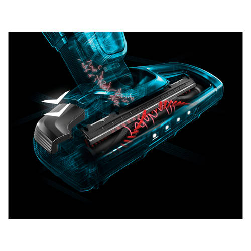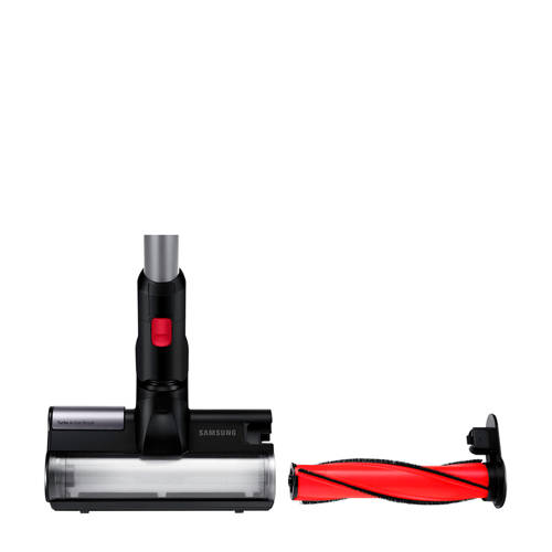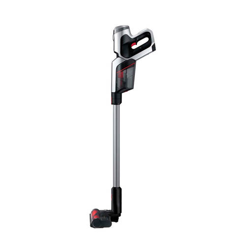Deze Samsung POWERSTICK PRO VS8000 krachtige snoerloze 2-in1 steelstofzuiger levert maar liefst 150 watt aan zuigkracht dankzij de 450 Digital Inverter motor. Deze motor draait bijzonder snel en de luchtweerstand is miniem dankzij de hoge zuigkracht. Deze 2 in 1 Powerstick wordt geleverd met min turboborstel die maximaal presteert op zowel harde als zachte vloeren. De borstelharen dringen diep in tapijt door om zo de kleine stof en vuildelen te verwijderen. Met de volle 32,4 V Lithium-Ion kun je tot wel 40 minuten je huis reinigen. De flexibele handgreep maakt het mogelijk om zonder je te bukken op die plekken te zuigen, zoals onder bedden, stoelen of kasten. Dit spaart je rug en pols.Als stofzuiger is de POWERSTICK PRO VS8000 te gebruiken voor grote vloeroppervlakten en als kruimelzuiger voor kleine oppervlakten, plinten en meubels. Met de VS POWERSTICK PRO VS8000 zuig je snel, soepel en stabiel om meubels en andere obstakels heen. En met de standaard meegeleverde combinatieborstel op de kruimelzuiger kun diverse oppervlakken schoonmaken, van kruimels op je tafel met zachte stofborstel, tot plinten en kieren. Verder is de POWERSTICK PRO VS8000 voorzien van Hepa Filter die de allergie veroorzakende deeltjes zo goed tegenhoudt dat de uitgeblazen lucht schoner is dan de omgevingslucht. Dit filter zorgt ervoor dat 99,9% van de uitgeblazen lucht stofvrij is. OnderhoudOnderhoud en schoonmaken van de POWERstick is erg eenvoudig. Vuil, stof en haren zijn eenvoudig uit de EZClean borstel ter verwijderen door deze eenvoudig uit de stofzuigermond te schuiven. En om de stofopvangbak kun je gemakkelijk legen door alleen maar aan de hendel te trekken en de stof en vuildeeltjes inde afvalbak te deponeren. Filter en opvangbak spoel je gewoon onder kraan schoon. Specificaties- Vermogen: 150 Watt- Lithium-ion accu (32,4 Volt)- Gebruikstijd (volle accu) 40 minuten- Oplaadtijd: 270 minuten- Kruimeldieffunctie- Verwisselbare accu- EZ Clean stofreservoir met inhoud van 0,35 liter- EZClean borstel- Hepa filter- Wasbaar filter- Geluidsniveau: 73 dB- Kleur: wit/rood- Garantietermijn: 2 jaarAfmetingen en gewicht- Afmetingen (hxbxd) 110x26x16,5 cm- Gewicht: 2,7 kgInhoud verpakking- Steelstofzuiger, oplaadstation oplaadsysteem, batterij, combinatieborstel, kierenzuigmond, handleiding.