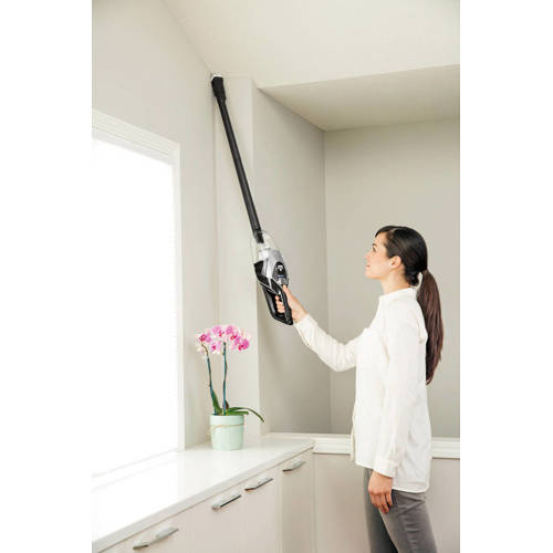 Houdt je huis te allen tijde en zonder moeite schoon met de Rowenta steelstofzuiger RH7329 draadloze steelstofzuiger. Dankzij de unieke borstel werkt deze stofzuiger goed op alle soorten vloeren en ondergronden. Het draadloze gebruiksgemak maakt het de ideale partner voor snelle en effectieve schoonmaakresultaten, ook op moeilijk te bereiken plekjes.De nieuwe X-PERT Essential 260 draadloze steelstofzuiger zorgt dat je huis van vloer tot plafond schoon is, terwijl je geniet van de vrijheid van een draadloos apparaat. Met één enkele klik wordt het een lichte, efficiënte kruimelzuiger om alle oppervlakken mee schoon te maken. In een handomdraai maak je deze stofzuiger gereed om hooggelegen plekjes schoon te maken, bijvoorbeeld om spinnenwebben te verwijderen. De stofzuiger's unieke 'Power Slim Vision' zuigmond heeft een geïntegreerde gemotoriseerde borstel (tot 6500 RPM) voor optimale stofopname op elke vloer, met LED-verlichting en een dunne zuigmond om makkelijk op donkere plekjes en onder meubels te stofzuigen. Dankzij de geavanceerde cycloontechnologie en daarmee goede scheiding van stofdeeltjes van de lucht, worden optimale schoonmaakprestaties geleverd. Makkelijker wordt het niet! De stofzuiger is uitgerust met een geïntegreerde, ergonomische knop die niet continu ingedrukt hoeft te worden. Dit alles draait op een 21,9V lithium-ionbatterij voor tot wel 25 minuten stofzuigen.- Alles-in-1 draadloze steelstofzuiger die met één klik in een kruimelzuigerverandert voor moeilijk te bereiken hoeken en gaten, en met nog één klik ideaal geschikt is om hooggelegen plekjes mee schoon te maken- Deze draadloze steelstofzuiger heeft een unieke gemotoriseerde 'Power Slim Vision' zuigmond (tot 6500 RPM) voor optimale prestaties op elke vloer (tegels, parket, tapijt, etc.) met LED-verlichting voor beter zicht bij het schoonmaken op donkere plekjes, bijvoorbeeld onder lage meubels zoals een kast en bed- Geavanceerde cycloontechnologie zorgt voor een uitstekende scheiding van lucht en stof voor langdurige schoonmaakprestaties- Deze draadloze stofzuiger is uitgerust met een 21,9 V lithium-ionbatterij voor tot wel 25 minuten stofzuigen- De stofzuiger is uitgerust met een geïntegreerde, ergonomische knop die niet continu ingedrukt hoeft te worden- Platte zuigmond om goed te kunnen stofzuigen onder lage meubels- 2 geïntegreerd borstels voor direct schoonmaakgemak- Dit model wordt ook geleverd met een wandoplaadstation