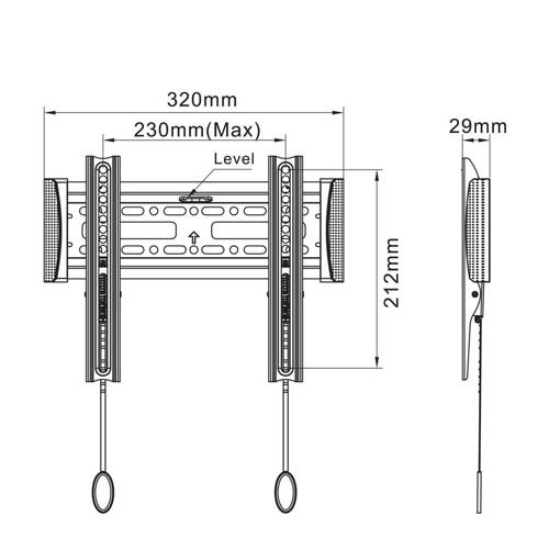 Newstar NM-W120Met deze NewStar NeoMounts wandsteun, model NM-W120 Black, bevestigt u een LCD/LED/PLASMA scherm vlak aan de wand. Door gebruik te maken van een wandsteun profiteert u optimaal van de mogelijkheden van uw scherm. Deze universele steun is slechts 2,9 cm diep waardoor u een schitterend schilderij-effect creëert. De afstand tot de wand kan indien nodig met de standaard meegeleverde opvulbussen worden vergroot tot 4 cm.De NM-W120 heeft een draagvermogen van 20 kg en kan gemonteerd worden op schermen met een maximaal VESA gatenpatroon van 200x200 mm aan de achterzijde van het scherm. Hiermee hangt u eenvoudig schermen t/m 40' aan de wand.De montage is een fluitje van een cent. U monteert de horizontale strip op de wand en de 2 haken achterop uw scherm. Vervolgens haakt u het scherm over de strip en kunt u optimaal genieten van uw flatscreen!Deze wandsteun wordt geleverd inclusief installatiemateriaal.