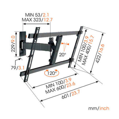 Vogel's BASE 25 S TURN 120 WALL MOUNT 19 37 INCH muurbeugel