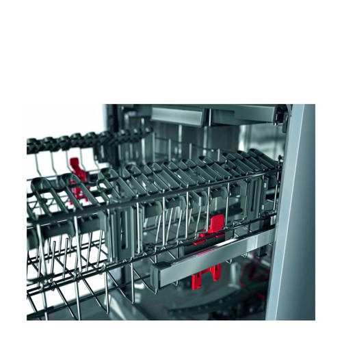 AEG FFB53600ZW vaatwasser met energieklasse A+++ met ruimte voor 13couverts. Deze afwasmachine is voorzien met AutoDry technologie met AutoDoorsysteem, waarbij de deur automatisch 10 cm wordt geopend als de juiste temperatuur bereikt is. Daarna wordt de droging geoptimaliseerd met een natuurlijk luchtstroom. Warme lucht kan uit en koude lucht kan instromen. Een vlekkeloze vaat die maximaal gedroogd is met een minimaal energieverbruik als resultaat! De Airdry modus kun je uitschakelen als er bijvoorbeeld kinderen in de buurt zijn. Verder kunnen je glazen niet veiliger gereinigd worden, dan met de AEG SoftSpikes, die je glazen perfect vasthouden zodat ze niet beschadigen. Een flexibele indeling is mogelijk, dankzij de flexibele rekjes, opklapbare bordenrekken en neerklapbare kopjesrekken. Elk onderdeel kan dus op een handige en praktische ruimte worden ingedeeld. De FFB53600ZW heeft onder andere de programma's: 30 minuten 60°C, AutoSense 45°-70°, Eco, glas 45°C en intensief 70°C. Verder met een digitaal display met de mogelijkheid om de starttijd uit te stellen en kun je resttijd aflezen. Verder kun je met de Timer Saver functie, de tijdsduur van het programma tot de helft verminderen. Ook handig met feestjes. En de Auto-Off functie schakelt de vaatwasser na een korte standby volledig uit. En het AquaControl-systeem biedt een drievoudige bescherming tegen waterschade. De dubbelwandige watertoevoerslang en het geïntegreerde uit- en overloopsysteem zorgen op een betrouwbare manier voor bescherming. En indien het dan toch al eens zou verkeerd lopen, dan zorgt een pomp - zelfs wanneer het apparaat uitgeschakeld is - ervoor dat het water wordt weggepompt. Met:- Watersensor detecteert de vuilgraad en stemt het waterverbruik daarop af: De watersensor meet doorlopend hoe troebel het water is. Hierdoor kan bepaald worden hoe vaak het water ververst moet worden. Bij het afspoelen wordt gemeten of nog een volgende spoelgang nodig is. De mate waarin de watersensor zijn werk doet, is afhankelijk van de programmakeuze.- Sensorlogic watersensor: Gevoelige sensoren meten hoe snel het water in de machine warm wordt - en hoeveel daarvan van het servies terugstroomt. Aan de hand van deze gegevens berekent de SENSORLOGIC de noodzakelijke hoeveelheid water en het maximale energieverbruik.- LED-indicaties voor zout en glansspoelmiddel- Warmwateraansluiting tot 60°C- Auto-off functie- Inverter motor met 10 jaar garantie- Startuitstel tot 24 uur en resttjdindicatie- Bedieningspaneel met tekst en symbolen- In hoogte verstelbare bovenkorf, ook bij volle lading