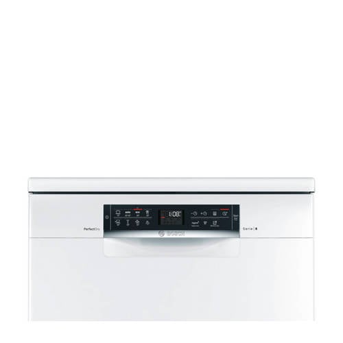 Met de Bosch SMS68MW05E PerfectDry vaatwasser worden zelfs glazen en plastic perfect droog dankzij PerfectDry. Daarbij is de vaatwasser met 40dB ook nog eens bijzonder stil tijdens het stil programma en heeft hij een energieklasse van A+++. Met het zwarte bedieningspaneel met TouchControl kies je uit één van de acht verschillende programma's. Ook stel je hier eenvoudig de gewenste starttijd in. Zo kan de vaatwasser op ieder gewenst moment gestart worden, ook wanneer je aan het werk bent of slaapt. Het display geeft weer hoe lang het programma nog duurt. Naast de standaard programma's zitten er ook nog vier speciale functies op, zoals bediening via HygiënePlus en VarioSpeed Plus. Met VarioSpeed Plus verkort je met één druk op de knop de spoeltijd tot wel 66% zonder in te leveren op de reinigingspresentaties. Met de HygiënePlus functie spoel je op hogere temperaturen voor een optimale hygiëne. Handig wanneer je bijvoorbeeld babyflesjes moet spoelen of voor mensen met een allergie. De Bosch SMS68MW05E PerfectDry vaatwasser heeft VarioFlex-servieskorven en een VarioLade. Hiermee kan je eenvoudig je vaatwasser flexibel indelen en heb je meer ruimte voor je vaat. Deze vaatwasser heeft een capaciteit van 14 standaard couverts. Verder beschikt de Bosch SMS68MW05E over LED verlichting aan de binnenzijde, kinderbeveiliging en Home Connect via WiFi. Deze vaatwasser is wit, vrijstaand, geschikt voor onderbouw en 60 cm. Vaatwasser met de beste droogresultaten dankzij PerfectDry De Bosch SMS68MW05E vaatwasser beschikt over PerfectDry. De vaat wordt met een krachtige luchtstroom gedroogd. De luchtvochtigheid in jouw vaatwasser wordt omgezet in warme lucht én in combinatie met de extra droogfunctie komt jouw vaat perfect droog uit de vaatwasser. Zo hoef je vaat als plastic bakjes of babyflesjes niet meer met de hand na te drogen. Vaatwassen met minder energie en meer resultaatDe Bosch SMS68MW05E is zeer milieuvriendelijk. Hij levert namelijk uitzonderlijke reinigingsprestaties met minder water en energie. Door verschillende technieken wordt water en energie bespaard voor een betere watercirculatie. En de AquaSensor past het waterverbruik aan op basis van het type en de hoeveelheid vuil. Afhankelijk van de hoeveelheid vuil en resten van vet of afwasmiddel bepaalt de AquaSensor of het nodig is om het spoelproces voort te zetten.