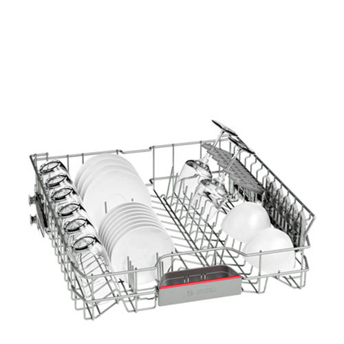De Bosch SMU25AS00E onderbouw vaatwasser 60 cm in RVS is een extra stille A+ vaatwasser. Deze vaatwasser heeft een capaciteit van 12 standaard couverts. De 5 programma's bieden een ruime keus nml.; Intensief 70 °C, Auto 45-65 °C, Eco 50 °C, 1h. 65 °C en Voorspoelen. Bovendien voorzien van 1 speciale functie nml. VarioSpeed (Met deze functie is de vaatwasser 50% sneller klaar dan het normale programma). De DoseerAsssistent zorgt ervoor dat het vaatwasmiddel gelijkmatig wordt verdeeld.Onderscheidende kenmerken;Stil programma: bijzonder stille werking met een geluidsniveau van 48dB.7-segment Display: geeft de resttijd aan en standaardinformatie, zoals de bijvul-status.In hoogte verstelbare bovenkorf: zorgt voor extra ruimte,speciaal voor groot servies.AquaStop: voor een 100% gegarandeerde bescherming tegen waterschade gedurende de levensduur van het apparaat.Indeling;-Vario-servieskorven-Extra ruime zilverkleurige servieskorven-In hoogte verstelbare bovenkorf-2 Neerklapbare bordensteunen onderkorf-Kopjes-étagère in bovenkorf (2x)-Bestekkorf in onderkorfVeiligheid;-AquaStop waterbeveiliging: de meest betrouwbarewaterbeveiliging met levenslange garantie-EasyLock deursluitingEcoSilence DriveOm het reinigen nog efficiënter uit te voeren, ontwikkelde Bosch de zuinige EcoSilence Drive-motor. De EcoSilence Drive werkt zonder borstels, is zeer stil en verbruikt minder stroom.Inbouwafmetingen (hxbxd) : 81,5-87,5 x 60,0 x 55,0 cm