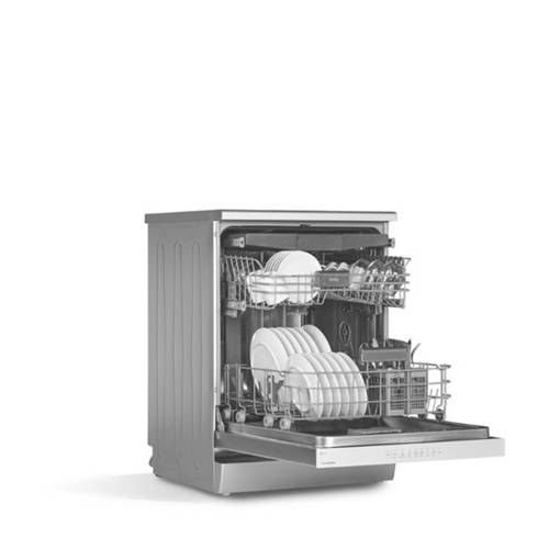 De Thomson TTDW600WHeen vrijstaande afwasmachine. Dit betekent dat je alleen hoeft te kijken of er genoeg ruimte is en dan kun je hem heel eenvoudig neerzetten. Het geluidsniveau is 45 decibel, waardoor je hem ook 's avonds aan kunt zetten. De vaatwasser is voorzien van 8wasprogramma's, ruimte voor 14 couverts, tijd indicatie, bestekvoorziening en een jaarlijks waterverbruik van 2800 liter. De perfecte vaatwasser als je veel eters hebt, want de Thomson TDW600WH wast zelfs de vieste vaat, helemaal schoon.Flexibel interieurDe korven van de Thomson vaatwasser TDW600WH zijn slim te gebruiken en daarin onderscheidt deze vaatwasser zich van zijn soortgenoten. Je kunt korven deels inklappen, in hoogte verstellen of verwijderen. Zo is er ook voor grote pannen ruimte in de vaatwasser. Voor kleine espressokopjes en bestek kun je de uitschuifbare 3D-lade gebruiken. Wil je de machine pas starten als je een volle lading hebt, dan kun je een spoel- en weekprogramma van een paar minuten kiezen zodat je bijvoorbeeld vette borden niet met de hand hoeft voor te spoelen. Zo verdwijnen vervelende geurtjes en voorkom je dat etensrestjes aankoeken. Met zijn royale programmakeuzes is de Thomson vaatwasser TDW600WH een zeer complete afwasmachine met uitstekende prestaties.