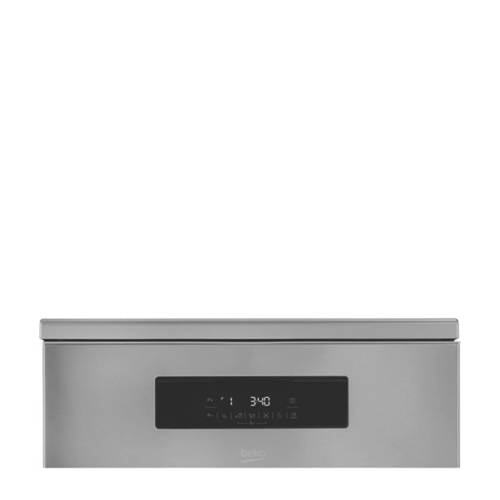 De Beko DFN38530X is een vrijstaande vaatwasser met ruimte voor 15 couverts en behoort tot de meest zuinige energieklasse: A+++. Deze Beko DFN38530X beschikt over 8 vaatwasprogramma’s waaronder : Mini 30 min., Eco, Baby protect , en GlassCare. Dankzij de krachtige sproeiarm onder in de vaatwasser wordt elk plekje van je vaat schoongespoeld. Met de optie startuitstel (0:30 – 24:00 uur) kun je alvast een vaatwasbeurt instellen, die dan enkele uren later automatisch begint. Zo kun je bijvoorbeeld instellen dat de vaatwasser precies klaar is als je thuiskomt uit je werk. Als er water lekt of overstroomt, sluit het slimme WaterSafe-systeem de watertoevoer naar de machine af, zodat erger voorkomen wordt. Auto programmaDankzij het auto programma, wordt de bevuilingsgraad van de vaat door sensoren gedecteerd, die op hun beurt automatisch bepalen welke wascyclus het meest geschikt is.Anti-bacteriële bekledingIn de loop van de tijd, kunnen er bacteriën voorkomen op de rekken van de vaatwasser. De anti-bacteriële bekleding op de Beko vaatwassers vormen een blokkade voor de vorming van bacteriën.ProSmart Inverter-motorAls je milieubewust bent maar toch een stillere vaatwasser wilt, kunnen we je niet tegenspreken. De ProSmart™ Inverter-motor is niet alleen 2 maal stiller* dan de meeste andere (dankzij een wrijvingsloze motor) maar helpt je ook water en energie te besparen. Hij verspilt bijna niets en biedt een classificering van A+++ door alleen te gebruiken wat noodzakelijk is. Dat is een hele zorg minderFast+-functieAls je ooit een grote menigte vermaakt hebt, dan weet je dat er geen sprake kan zijn van wachten op het schoonmaken van glazen en borden. Je wilt je gasten vast en zeker niet laten wachten op het tweede rondje drankjes en hapjes. De Fast+-functie in jouw Beko vaatwasser biedt je reinigingsprestaties die een verbazingwekkende 3 maal sneller* zijn. Dit kan je tot 70%* van je kostbare tijd besparen en krijgt je schotels bovendien glanzend schoon. Allemaal extra tijd dus voor een onderhoudend gesprek met je gastenWaterSafe+In geval van overlopen, sluit het WaterSafe+ systeem van de Beko vaatwassers het water dat in de machine loopt af.