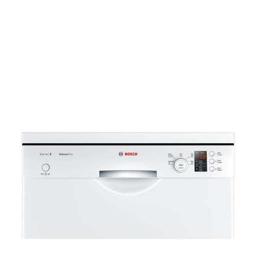 De Bosch SMS25AW00E vaatwasser is met 48dB onopvallend en stil op de achtergrond druk voor je aan het werk. De vaatwasser beschikt over vierverschillende programma's zoals Intensief 70 en Eco 50. In de vaatwasser is plek voor 12 standaard couverts. De Bosch SMS25AW00E vaatwasser beschermt je glazen, flessen en vazen extra goed het glasbeschermingssysteem. Hiermee regelt de vaatwasser de hardheid van het water, zodat zelfs je fijnste glazen met de grootst mogelijke zorg worden behandeld. Verder beschikt de vaatwasser over energieklasse A+, kinderbeveiliging, in hoogte verstelbare bovenkorf en een doseerassistent welke het vaatwasmiddel gelijkmatig verspreid. Ook beschikt hij over een AquaStop voor een 100% gegarandeerde bescherming tegen waterschade gedurende de levensduur van het apparaat. Deze vaatwasser is wit, vrijstaand, geschikt voor onderbouw en 60 cm. Milieuvriendelijke vaatwasser De Bosch SMS25AW00E is zeer milieuvriendelijk. Hij levert namelijk uitzonderlijke reinigingsprestaties met minder water en energie. Door verschillende technieken wordt water en energie bespaard voor een betere watercirculatie. En de AquaSensor past het waterverbruik aan op basis van het type en de hoeveelheid vuil. Afhankelijk van de hoeveelheid vuil en resten van vet of afwasmiddel bepaalt de AquaSensor of het nodig is om het spoelproces voort te zetten.
