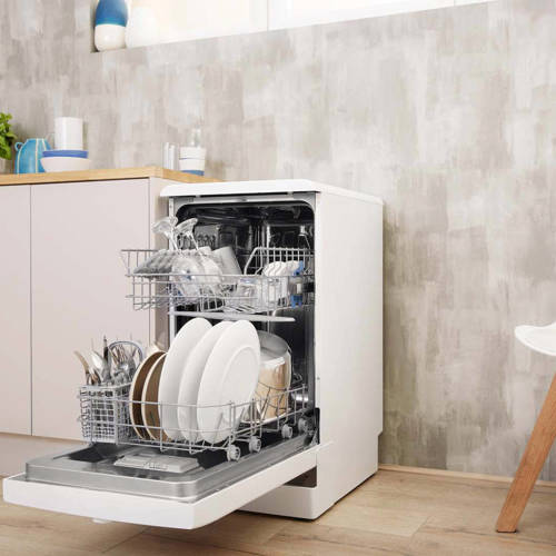 Kenmerken van deze Indesit vaatwasser: deze vaatwasser combineert een breedte van 45 cm en een klein, compact formaat met ruimte voor een groot aantal couverts, zodat je altijd over volop ruimte beschikt, zowel in het apparaat als daaromheen. A+ energie-efficiëntieklasse. Laag waterverbruik gecombineerd met een ruimte-efficiënt, compact ontwerp.Verstelbare voetjes voor perfecte stabiliteit op ongelijkmatige vloeren en oppervlakken.Tijdschakelaar voor startvertragingMet het Delay-programma kun je naar eigen inzicht jouw programma's later op de dag of 's nachts starten. Voeg gewoon het wasmiddel naar eigen keuze toe, stel het programma in en laat jouw Indesit apparaat de rest doen.