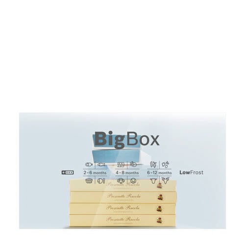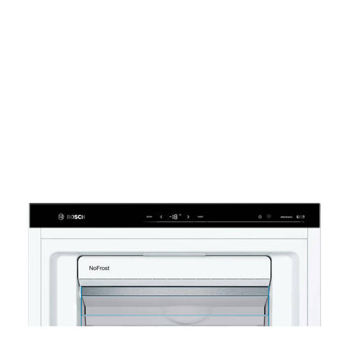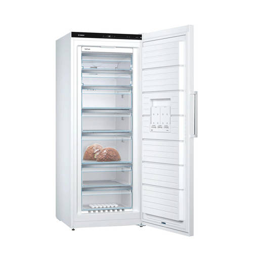 De 70 centimeter brede Bosch vrieskast GSN54DWDV heeft maar liefst een totale inhoud van 327 liter. Deze vrieskast is een extra breed model met meer ruimte voor etenswaren. De indeling van de koelkast is makkelijk te veranderen doormiddel van de in hoogte verstelbare plateaus.Topniveau tot in elk detailDe temperatuur is tot op de graad nauwkeurig te regelen met TouchControl bediening. De deur gaat zonder inspanning open dankzij het Air Channel System en het interieur wordt verlicht met heldere en zuinige LED-lampjes. In de BigBox-lade kun je grote dozen kwijt, handig voor een ijstaart of een grote bout vlees. Als je nog grotere formaten wilt invriezen kun je de glazen plateaus en lades uit de vrieskast halen. De Bosch GSN54DWDV is voorzien van VarioZone. Hierdoor is er meer flexibiliteit en ruimte dankzij de uitneembare glazen plateaus.De Bosch GSN51DWDV staat voor gemakDe Bosch vrieskast GSN54DWDV blijft altijd optimaal presteren. Het Fresh Sense klimaat zorgt ervoor dat de temperatuur constant blijft en de versheid van je levensmiddelen gegarandeerd is. Dankzij de NoFrost technologie hoef je deze vrieskast nooit te ontdooien. De binnenkant blijft ijsvrij en dat betekent dat je alle ruimte optimaal kunt benutten. Het Multi Airflow-systeem draagt bij aan een langere versheid omdat de koude lucht gelijkmatig over elk niveau van de vriezer wordt verdeeld.