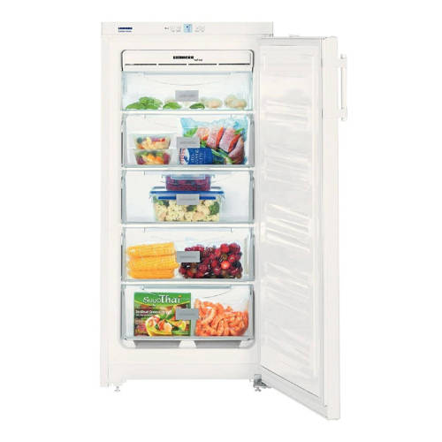 Liebherr GNP 1913-21 vrieskast met energieklasse A++ en een vriesruimte van 151 liter. De GNP 1913-21 heeft onder andere een akoestisch deur en temperatuuralarm, kinderbeveiliging, een digitaal temperatuurdisplay en 5 vriesladen. Tevens beschikt de vriezer over VarioSpace en een SuperFrost automaat. FrostSafe zorgt ervoor dat iedere vrieslade gebruikt kan worden om etenswaren in te vriezen, doordat rondom elke vrieslade kou wordt geproduceerd.NoFrostBij een gewone vrieskast wordt de warmte onttrokken aan de vriesruimte, maar niet het vocht dat zich in die lucht bevindt. In het vriesgedeelte ontstaat daardoor rijpvorming, ofwel ijsafzetting.Bij NoFrost wordt de lucht met vocht en al uit het vriesdeel gezogen. De lucht wordt gekoeld en het vocht wordt als ijs vastgehouden door de verdamper. Deze wordt regelmatig volautomatisch ontdooid waarbij het vocht wordt afgevoerd naar een bakje op de motor waar het verdampt. Een ventilator blaast de koude en droge lucht weer terug in de kast.VariospaceVarioSpace staat voor variabel te gebruiken ruimte. Het biedt de mogelijkheid de vriesruimte aan te passen aan het formaat van de in te vriezen producten. Dankzij de vervanging van vaste verdamperplaten door glasplateaus, is het mogelijk de glasplateaus en laden uit te nemen waardoor één grote vriesruimte ontstaat. Uitnemen van een glasplateau en een lade biedt daardoor ruimte aan extra hoge producten.FrostSafeMet het FrostSafe systeem van Liebherr wordt er rondom elke vrieslade koude geproduceerd. Hierdoor kun je iedere lade zowel voor invriezen als voor het bewaren van uw producten gebruiken. Het lastige overpakken van bevroren producten behoort hiermee tot het verleden. De rondom gesloten, transparante vriesladen functioneren ieder op zich als een koude safe en bieden een goed overzicht over al je producten.SuperFrostSuperFrost verlaagt de temperatuur automatisch tijdelijk naar -32°C waarmee een koudereserve voor vitaminevriendelijk invriezen wordt gecreëerd. Te langzaam invriezen zorgt ervoor dat de cellen beschadigd raken wat bij het ontdooien van het product leidt tot vochtverlies. Wanneer bijvoorbeeld vlees te langzaam is ingevroren zal bij het ontdooien veel vocht weglopen wat de dichtheid en smaak van het product nadelig beïnvloedt. Bij het inschakelen van SuperFrost wordt de temperatuur snel verlaagd naar -32°C. Wanneer warmere, pas gekochte levensmiddelen in de vriezer worden gelegd zal de temperatuur in de vriezer wel stijgen maar deze zal niet boven de -18°C uitkomen. Hierdoor zullen enerzijds de reeds ingevroren levensmiddelen diepgevroren blijven en anderzijds zullen de verse producten sneller worden ingevroren waarmee de celstructuur van de producten niet wordt aangetast en smaak, vitaminen en structuur behouden blijven.Wijziging draairichting deurDe draairichting van de deur(en) is te wijzigen naar eigen inzicht. Het is mogelijk dit zelf te doen of onze bezorger zet hem tegen een geringe vergoeding voor je om. Je kunt dit aangeven onder het kopje service.