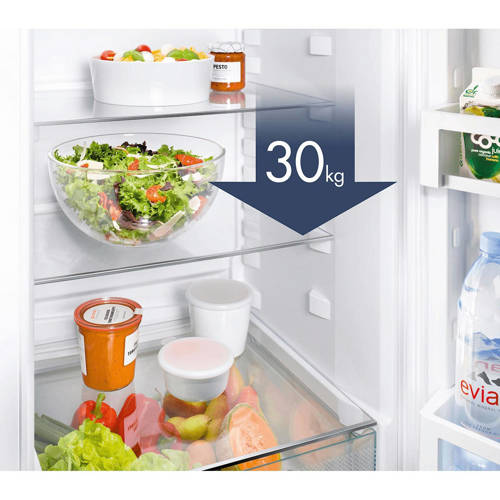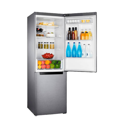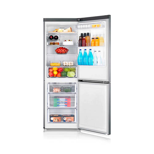 De Samsung koelvriescombinatie RB31FERNDSA/EF (RVS) met multi-airflow systeem zorgt ervoor dat de temperatuur constant blijft en de koeling condensvrij is. Dit heeft als resultaat dat de producten in de koeling extra lang vers blijven. De koelvriescombinatie beschikt over verschillende rekken die in geleiderails hangen. Je kunt de rekken eenvoudig naar je toe trekken en zo zonder problemen het achterste product uit de koelkast pakken. In veel koelkasten zie je grote lagen ijs op de wanden zitten, of vallen de druppeltjes condens naar beneden. De belangrijkste kenmerken zijn, energiezuinig met energielabel A+, handig in gebruik door de uitschuiflade, producten blijven extra lang vers en een ruime koeling met een inhoud van in totaal 310 liter. Wijziging draairichting deurDe draairichting van de deur(en) is te wijzigen naar eigen inzicht. Het is door de aanwezige elektronica niet eenvoudig dit zelf te doen. Je kunt de servicedienst van Samsung in je regio benaderen om dit tegen een vergoeding voor je te regelen. Mocht je toch besluiten om dit klusje zelf te klaren, valt de eventuele schade die wordt veroorzaakt bij pogingen om de deuropening om te draaien niet onder de garantie van Samsung. Wehkamp kan deze service helaas niet aanbieden.