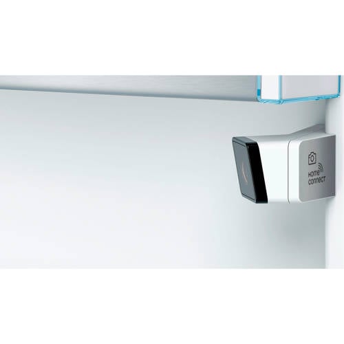 Bosch koelvriescombinatie KGN39HIEPDe zeer zuinige Bosch koel- vriescombinatie KGN39HIEP heeft veel ruimte en is bovendien gemakkelijk in gebruik dankzij Home Connect: een verbinding met je huishoudelijke apparatuur om je leven nog gemakkelijker te maken. Dankzij NoFrost is ontdooien verledentijd, wat tijd en energie bespaard. Groente en fruit blijft in deze Bosch nog langer vers en inruimen gaat bijzonder snel en handig. Deze koelkast is geschikt voor middelgrote gezinnen.VitaFresh: Langer versJe groente, fruit en vlees bewaar je het beste in de grote VitaFresh-lade. Er is er een speciaal voor je groente en fruit en eentje voor je vlees en vis. In deze lade kun je zelf de temperatuur en luchtvochtigheid instellen. Dit zorgt voor een langere bewaartijd van je verse voedsel, met behoud van voedingswaarde, sap en structuurDe koelruimte van de Bosch koel-vriescombinatie KGN39HIEPDe 279 liter koelkast is ingedeeld met 4 glazen plateaus, een flessenrek en 3 deurvakken. Wanneer je grote schalen eten wilt koelen, kun je eenvoudig een plateau naar buiten halen.De vriesruimte van de Bosch koel-vriescombinatie KGN39HIEPIn de 3 transparante lades van de vriezer kun je 87 liter opslaan. De vriesruimte is uitgerust met NoFrost technologie en Supervriezen functie. Bij stroomuitval blijven je producten nog minimaal 16 uur ingevroren.