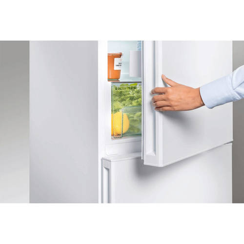 De Liebherr CN 4313 is een A++ koel/vriescombinatie met 95 liter NoFrost vriesdeel. Dankzij DuoCooling kan je het koeldeel apart aan/uitschakelen, erg handig bij het schoonmaken en energiebesparend bij langere afwezigheid. Volledig vlakke deuren met geïntegreerde grepen over de volledige deurhoogtes.Nooit meer ontdooien.NoFrost modellen van Liebherr bieden professionele diepvriestechniek. De levensmiddelen worden met een gekoelde luchtstroom ingevroren waarbij de warmte en de luchtvochtigheid automatisch worden afgevoerd.Geschikt voor onverwarmde ruimtes (>0°C).Met de 2 volledig gescheiden koelsystemen kan de temperatuur in het koel- en vriesdeel apart en zeer nauwkeurig worden ingesteld. Doordat er geen luchtuitwisseling plaatsvindt, wordt overdracht van geuren en uitdroging van gekoelde levensmiddelen voorkomen.Supersnel invriezen.De tijdgestuurde SuperFrost automaat zorgt voor een temperatuurdaling naar -32°C zodat producten snel en met behoud van vitaminen worden ingevroren. Na een vast aantal uren schakelt de SuperFrost automatisch uit en wordt de ingestelde temperatuur weer aangehouden.Invriezen en bewaren in iedere vrieslade.Het verplaatsen van ingevroren producten is niet nodig. In iedere lade kunnen producten snel en vitaminevriendelijk worden ingevroren. De rondom gesloten diepvriesladen met transparante voorzijde zijn extra hoog en uitneembaar. Daarmee garanderen zij een optimaal zicht op de producten in de lade. Iedere lade heeft 2 handgrepen waarmee de lade veilig kan worden uitgenomen.Genoeg ruimte voor de hoogste ijstaart.Alle vriesladen en de daaronder geplaatste glasplateaus (indien aanwezig) kunnen eenvoudig worden verwijderd. Zo ontstaat VarioSpace: een praktisch systeem voor extra bewaarruimte zodat zelfs de hoogste ijstaart kan worden bewaard.Gelijkmatigere temperatuurverdeling.PowerCooling zorgt voor een snelle afkoeling van verse levensmiddelen en een gelijkmatigere koeltemperatuur in het gehele interieur. Bij het openen van de deur wordt deze functie uitgeschakeld waardoor de koude lucht in de koelkast blijft en energie wordt bespaard.