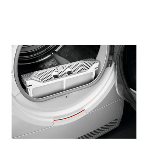 AEG Lavatherm T8DB84GW warmtepompdroger met uniek droogsysteem voor wol en zijde! Met vulgewicht van 8 kg, een energie-efficiëntieklasse A++ en een elektronische vochtmeting. Deze warmtepompdroger van AEG beschikt over een geavanceerde ProTex-trommel die speciaal is ontworpen om kleding te verzorgen. Deze trommel met patroon creëert de meest efficiënte luchtstroom en biedt extra ruimte zodat kleding niet in de knoop raakt en kreukt. Deze warmtepompdroger beschikt over ProSense®-technologie met geavanceerde vochtigheids- en temperatuursensoren die de droogtijd en het energieverbruik aanpassen aan de omvang van de lading, of het nu de was is van een hele week of van één dag. Dit bespaart tijd en energie, terwijl je favoriete, dagelijkse kleding zorgvuldig wordt beschermd. En de SensiDry-technologie onttrekt vocht aan stoffen bij een temperatuur die de helft lager is dan bij traditionele droogautomaten, zonder dat de droogtijd hierdoor langer wordt. Zo worden de stoffen nooit blootgesteld aan onnodige hitte. De originele textuur van je kleding blijft langer behouden.De T8DB84GW heeft onder andere een startuitstel functie, resttijdindicatie op het grote LCD display en geeft een bij einde programma een geluidssignaal. Indicatie van programmafasen: antikreuk/einde, afkoelfase, kastdroog, drogen, extra droog, en strijkdroog. Met extra tijdgestuurde droogprogramma’s, diverse speciale droogprogramma's waaronder Beddengoed, Katoen, Anti-kreuk, Mix, Outdoor, Zijde, Synthetica, Wol, Dekens en Sportkleding. Tevens beschikt de warmtepompdroger over ÖKOFlow filtersysteem. Een uiterst efficiënt filter dat eenvoudig kan worden verwijderd en schoongemaakt. De T8DB84GW droogt elke lading moeiteloos met slechts één filter en blijft effectief en energiezuinig doorwerken. De elektronische vochtmeting en indicaties voor: condensor, reservoir, zeef maken deze droger compleet. De draairichting van de deur is door je zelf aan te passen in 4 verschillende posities. ProSense™-technologieMet geavanceerde vochtigheids- en temperatuursensoren, gestuurd door intelligente software die de droogtijd en het energieverbruik aanpast.Reverserende trommelDeze warmtepompdroger werkt met een reverserende trommelbeweging. Hierdoor kun je grote stukken wasgoed drogen met een verminderde kans op het in elkaar draaien. Het droogresultaat is gelijkmatiger dan bij trommels die maar één kant op draaien.Extra lange antikreukfase na elk programma Als je het wasgoed niet meteen uit de droger kunt halen wanneer het programma is afgelopen, zorgt de extra lange antikreukfase ervoor dat het wasgoed niet gaat kreuken. Deze optie voegt 60 minuten extra toe aan de standaard 30 minuten anti-kreukfase aan het eind van het droogproces.
